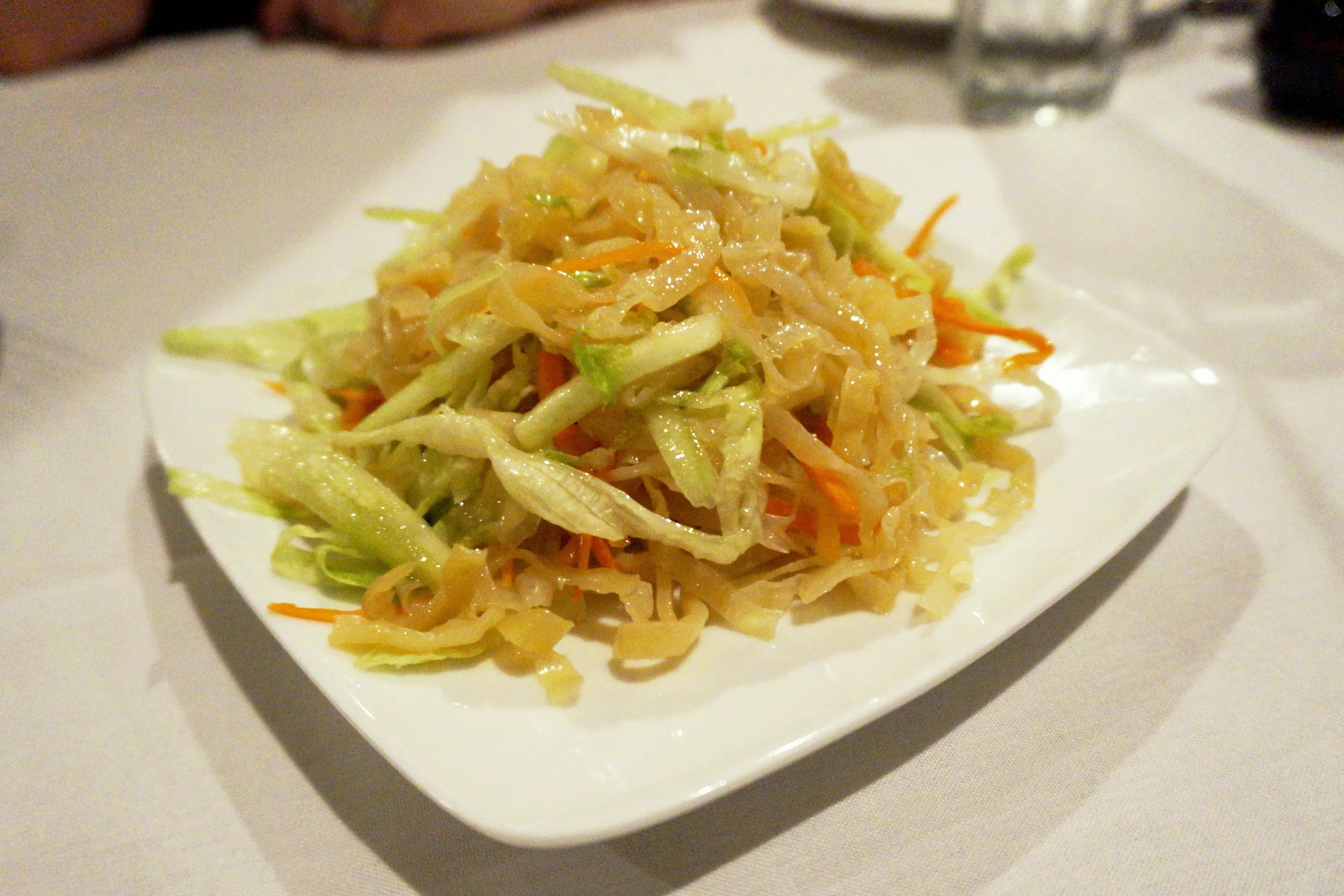 Jellyfish salad is mild and resfreshing between heavier courses.