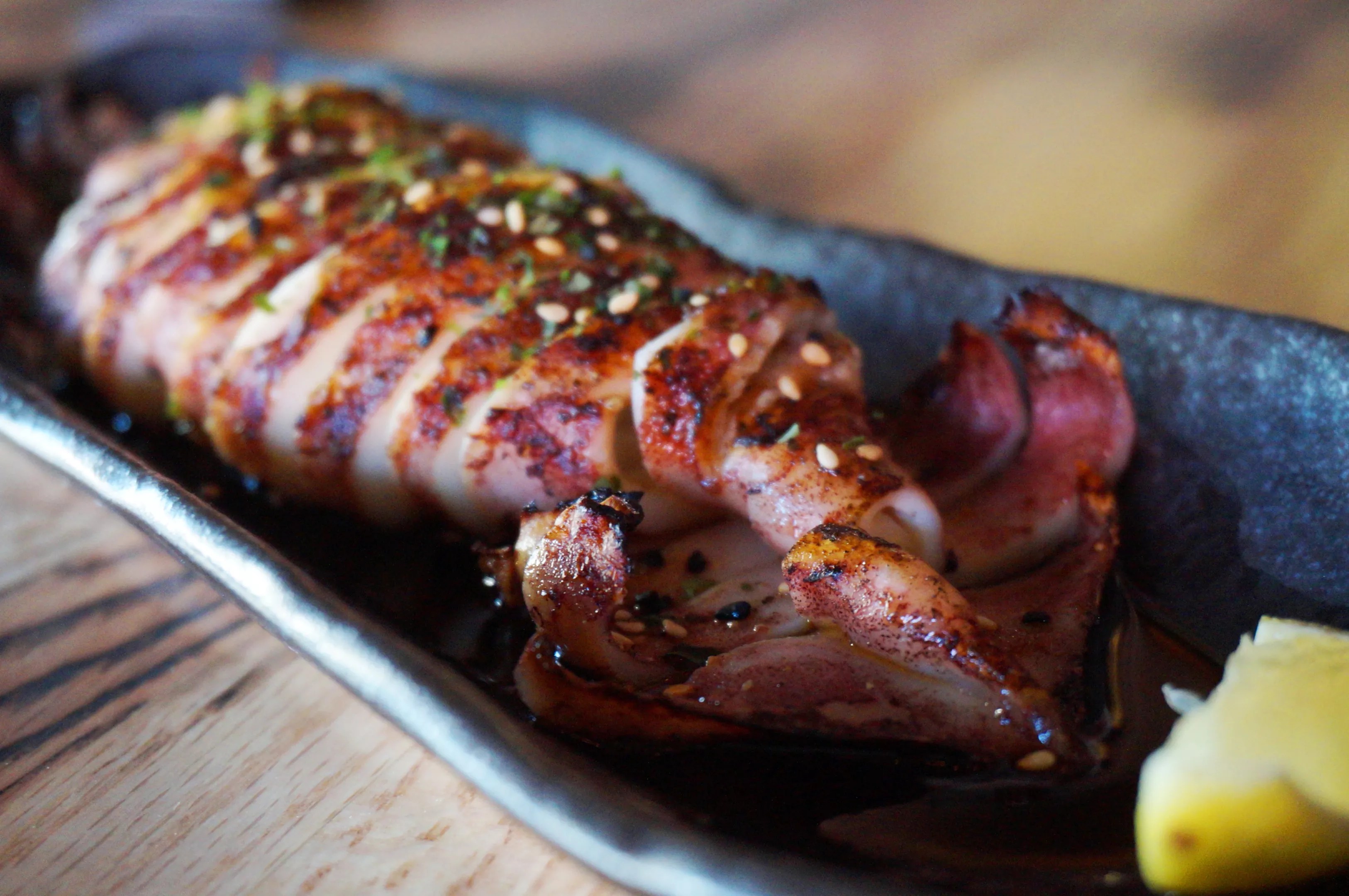Whole squid isn’t quite as bar-friendly as fried calamari rings, but tastes just as good when properly cooked.
