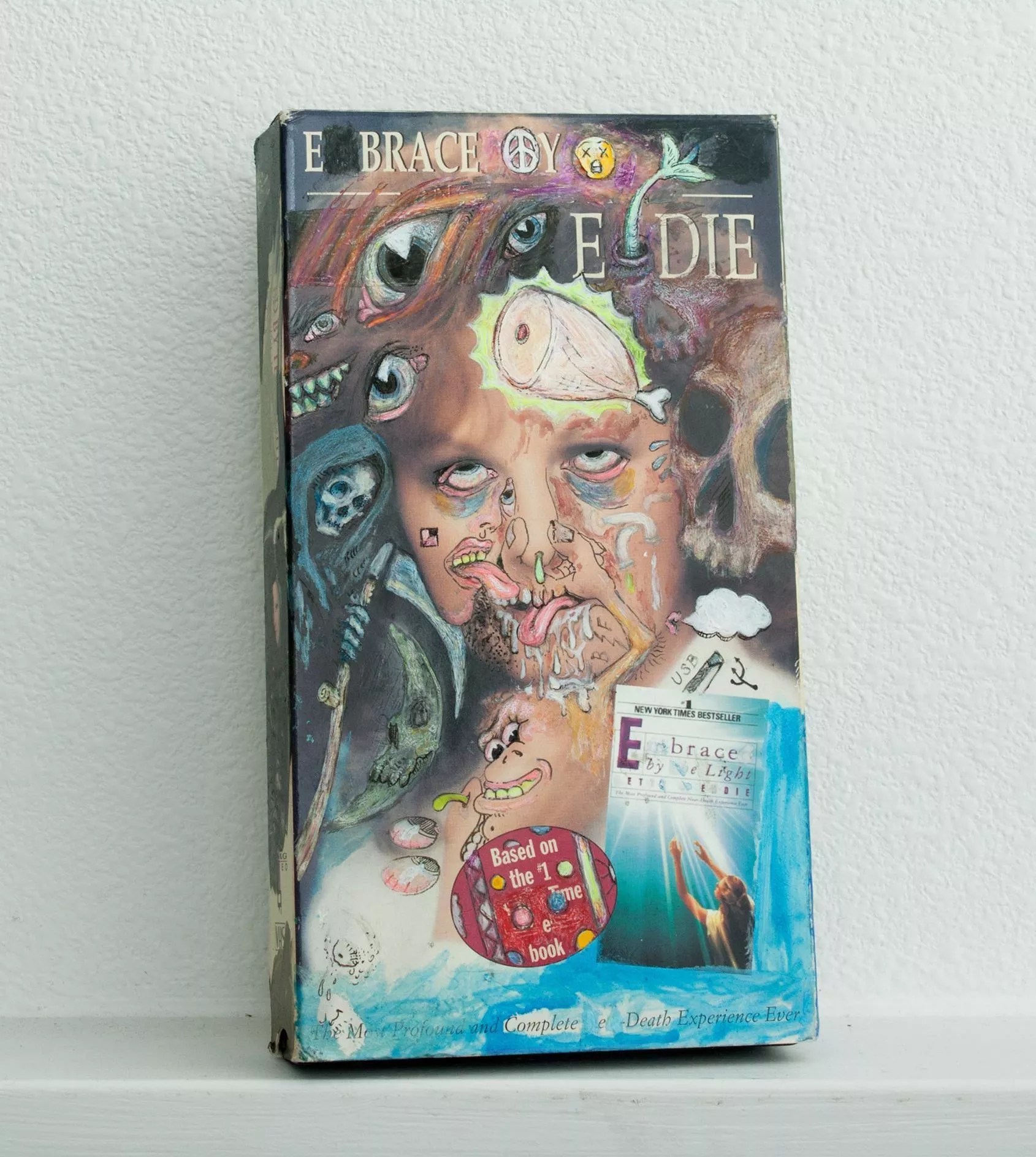 The drawings begin with found source materials, such as album covers, magazine pages and VHS cases, overlaid with drawings, often in sets of two – two record albums, two figures on a poster, and so on. And intrinsic to each is the dichotomy of Fodness’s experience of his own imagination and laborious process in contrast to the viewer’s experience in the gallery. “Like the Internet, and a good soap opera, my art provides the viewer with a multiplicity of accessible inlets and sub-narrative paths to weave a tangled cosmos,” notes the artist in a statement.