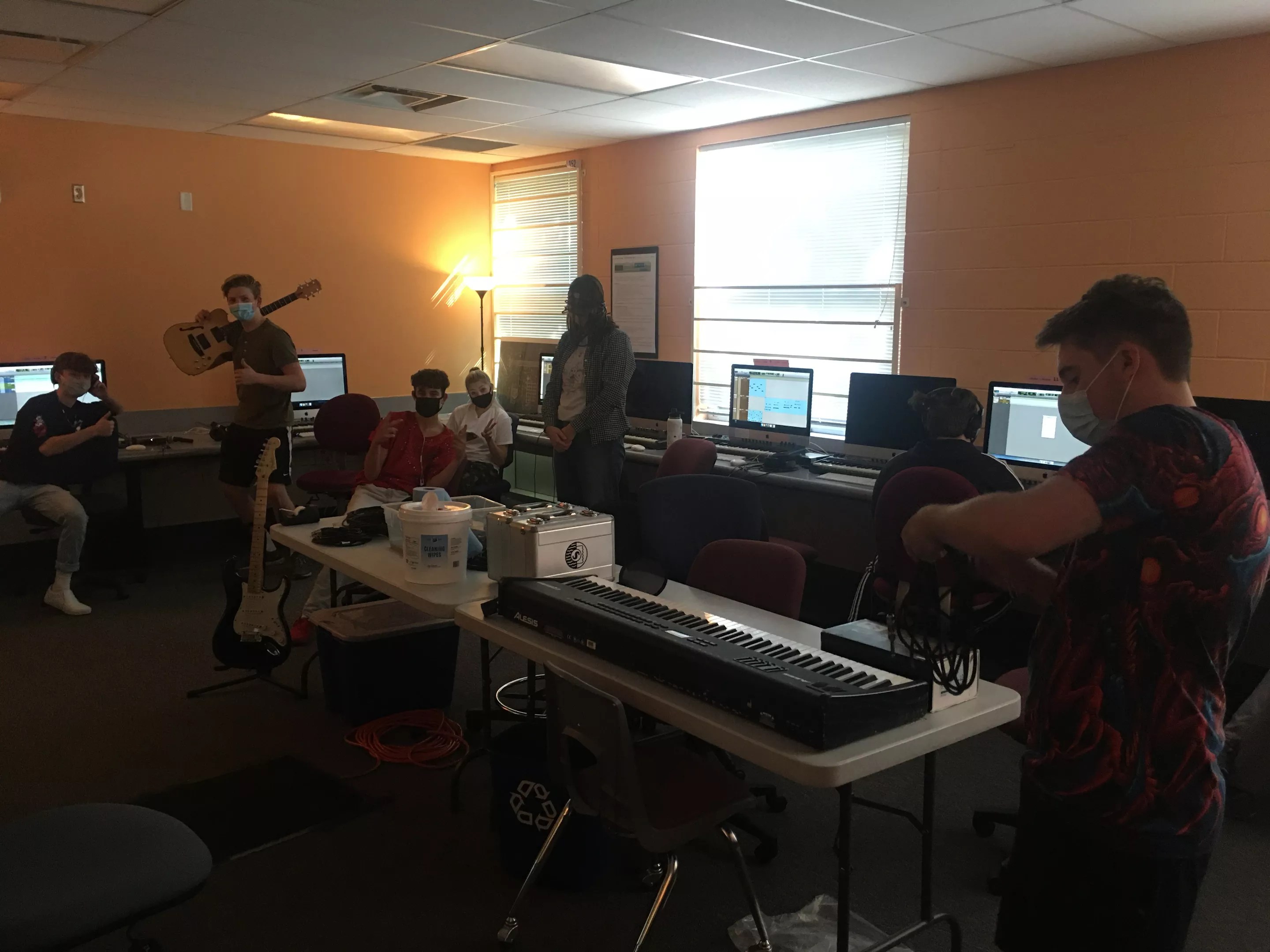 Frazier teaches four classes of six to eleven students each. He teaches music theory online and audio production in person to high school juniors and seniors. He says the students get hands-on experience using various equipment, from microphones and pre-amps to MIDI controllers, and learn how different gear choices impact production.