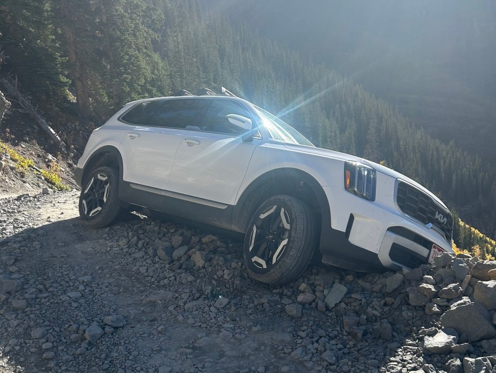 In an October 1 announcement on social media, the San Miguel County Sheriff’s Office shared photos of a white Kia Telluride SUV high-centered on the side of the mountain trail. According to the post, the man was from South Carolina and drove up the one-way road “despite being advised not to do so by people in the area.”
