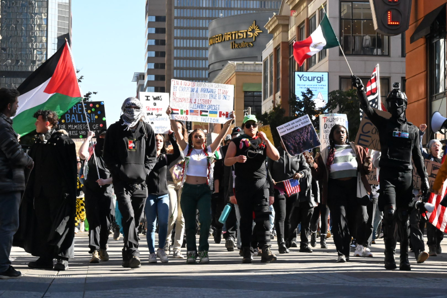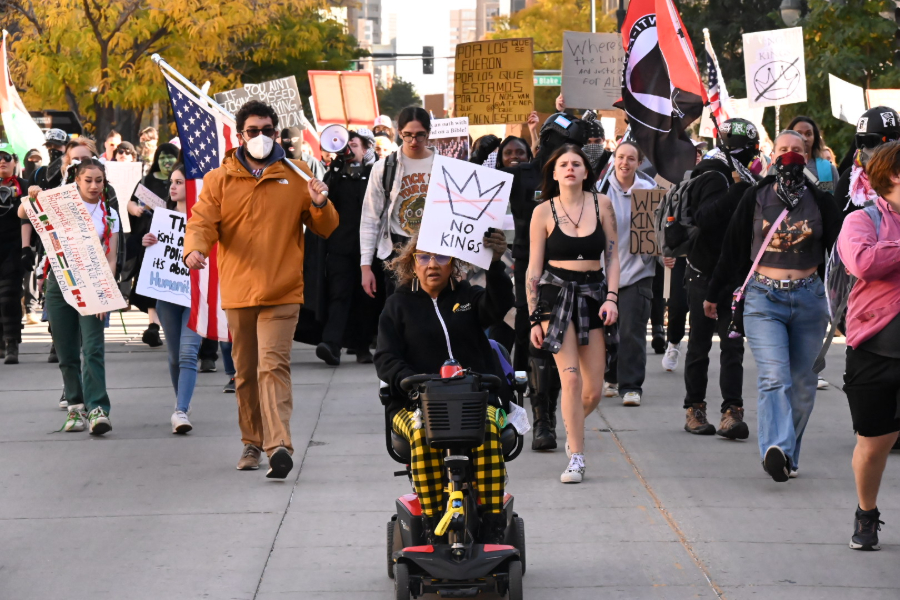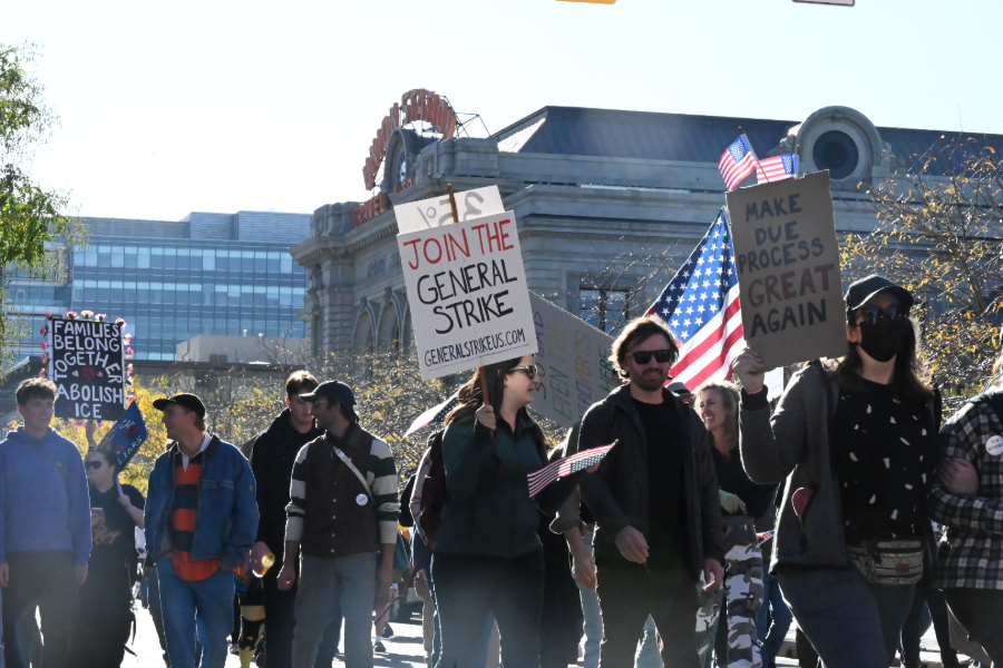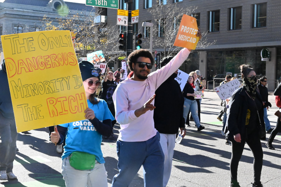 Acrss the Capitol at Lincoln Veterans Memorial Park, local activist groups including 50501 Colorado and the Denver chapter of the Party of Socialism and Liberation had tents set up where people could find how to continue expressing their opposition to Trump outside of protests. Meanwhile, at the west steps of the Capitol, thousands listened to speakers representing teachers’ unions, federal workers and advocates for socialism, LGBTQ rights and Palestine, among other causes.