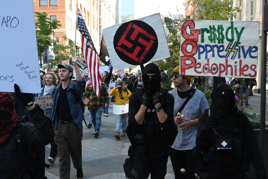 At around 4:30 p.m., which was half an hour after the No Kings protest was scheduled to end at the Capitol, officers began hurling smoke grenades and shooting pepper balls, which release an irritating gas that smells like chlorine and burns the mouth and nostrils. The group that had stuck around for a standoff was only about a few hundred strong; officers tackled a couple of masked protesters after they threw objects at them. The small clash ended at 15th Street and Chestnut, and the crowd was dispersed.