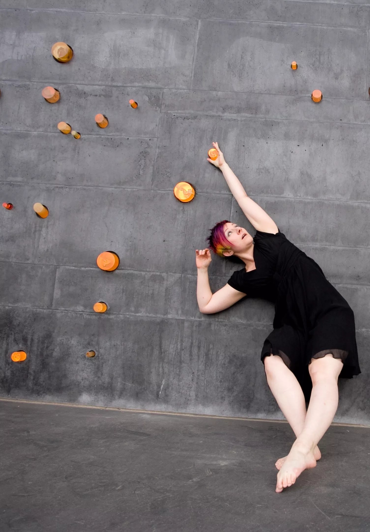 Angie Simmons of Eveolving Doors Dance, dancing up against the wall.