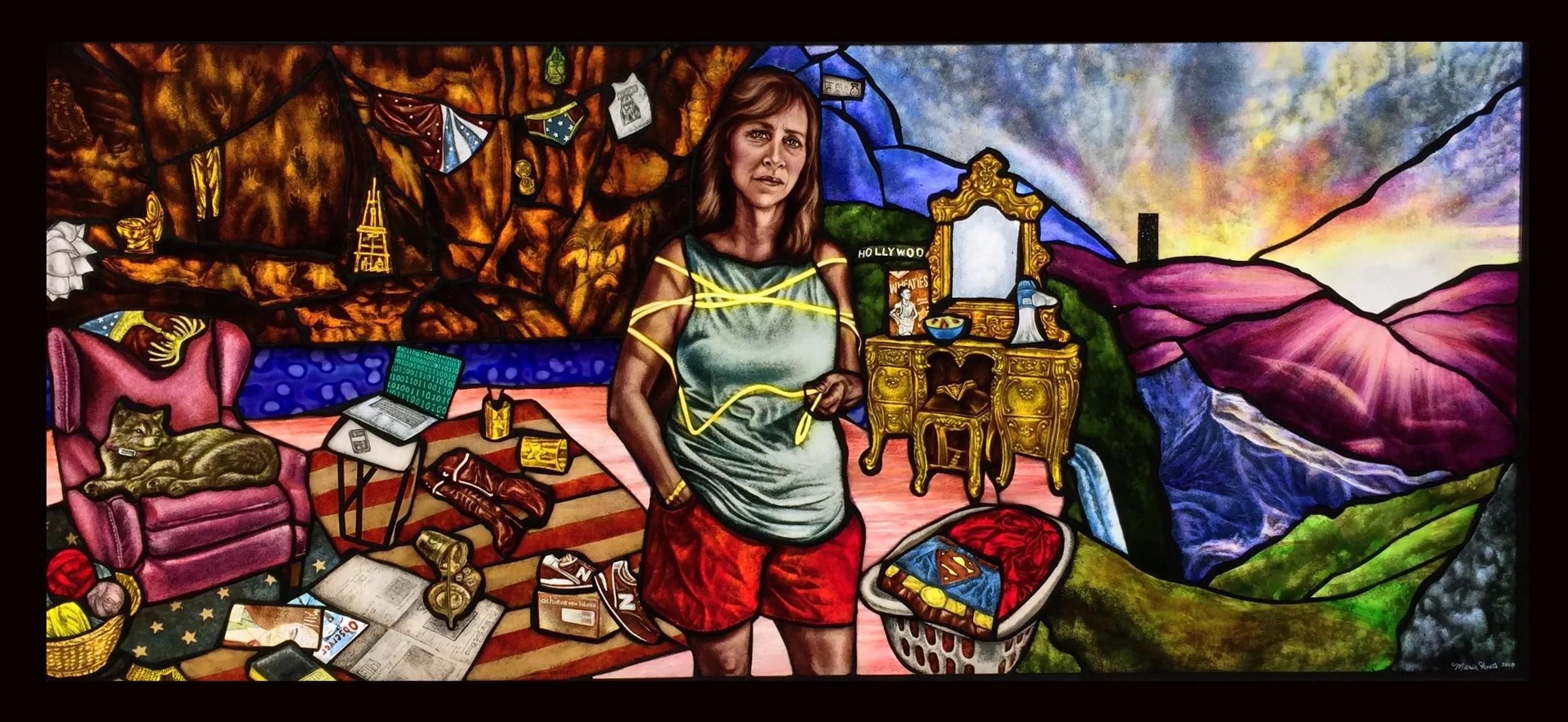 Several shows are debuting at the Hub at 40 West, including double solos at Core. Deborah Abbott’s fun wall assemblages for What is on your plate? are meant to encourage good-natured self-reflection. Meanwhile, glass-art maestra Maria Valentina Sheets’s kiln-fired glass paintings take up more contentious issues on the theme of anarchy. Incidentally, Sheets has recently been commissioned by Judy Chicago to create a stained-glass version of her painting “Queen Elizabeth.”
