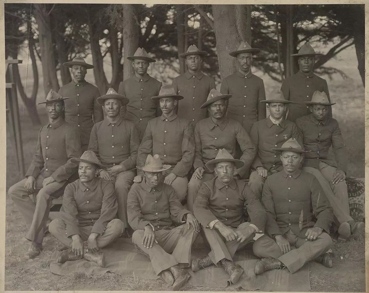 Group photograph of 10th Cavalry soldiers, around 1900.