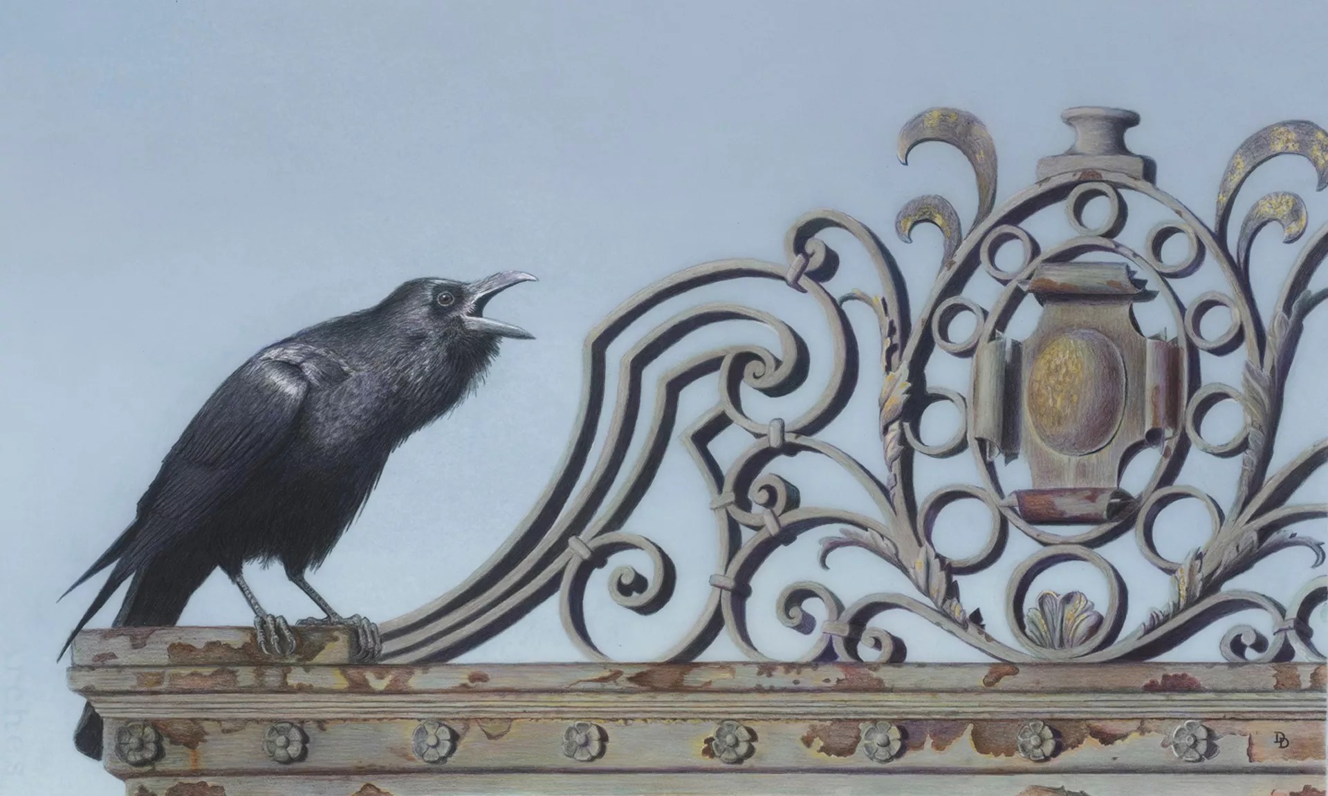 Dorothy DePaulo, “Raven,” colored pencil on drafting film.