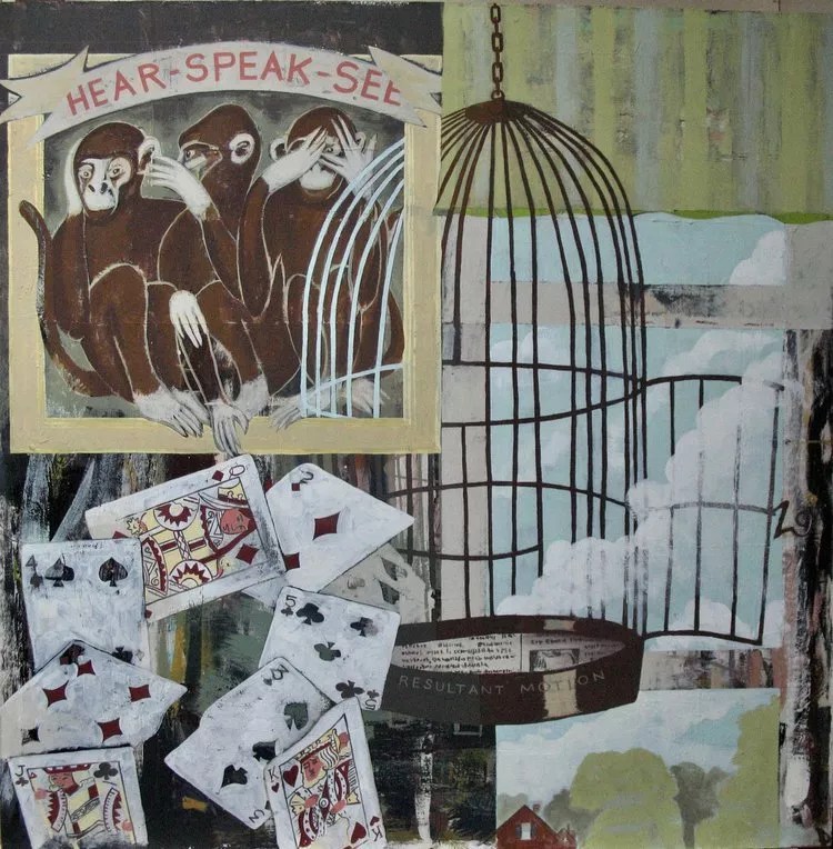 Edge’s foursome includes a series of drypoint prints of rock formations native to the Southwest by Sue Crosby Doyle; Nolan Tredway’s Soft Mutations stars a group of under-par works he created during the pandemic and has now reworked with more pleasing results; Heather Hauptman mused on the idea of What if She…the absence of the divine feminine in the patriarchy using fiber, photography and poetry that she’ll read at 7 p.m. during the opening reception; and Kerem Smith-Stone’s new works for Cloud Singers Show examine what it takes to find Black freedom.