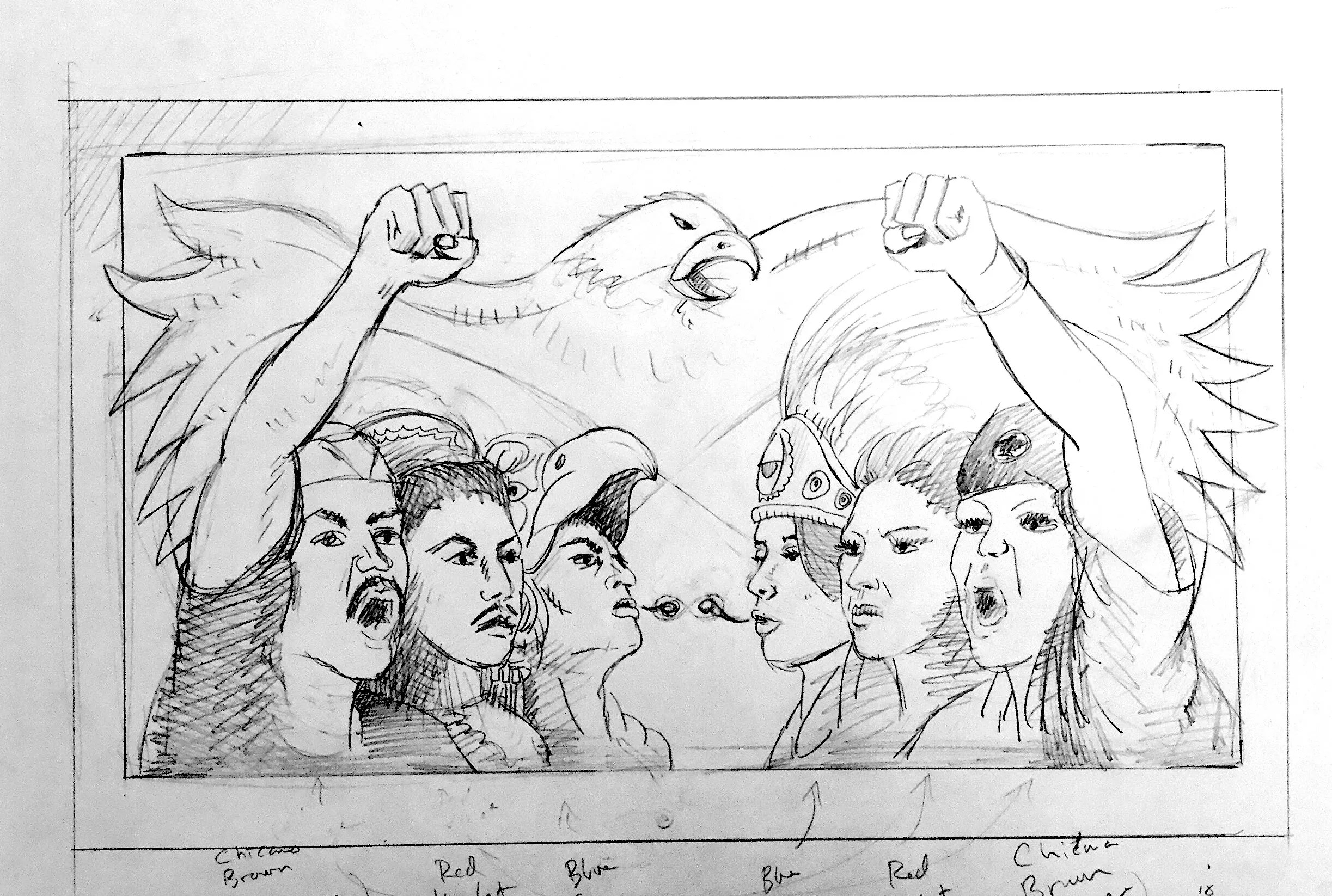Los Supersonicos’ mural sketch for In Sight On Site: Murals.