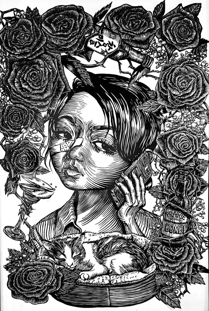 A new BRDG Project quarterly show opens at Modis in the City, showcasing Brett Fox’s photography altered with mixed media, Joey Kerlin’s collage work and Jini Kim Veenker’s black-and-white linocuts. The loose theme between them is storytelling through imagery. In other words, every picture tells a story.
