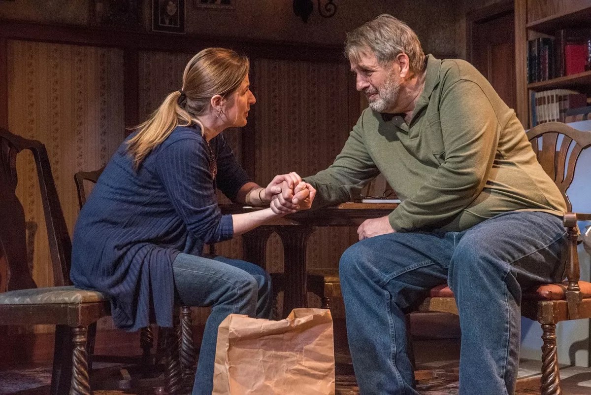 There are some absolutely fascinating lesser characters. Gus’s sister Clio – in a lovely, quietly controlled performance by Anne Oberbroeckling – has been a nun and also a member of the Shining Path, a guerrilla group in Peru guilty of appalling atrocities (as was the government they opposed). Maeve, Empty’s lover, is heavily pregnant by Vito, who was meant to just donate sperm but made his contribution more personally. She’s brainy, pretentious and floridly dramatic – and, as played by Karen Slack, the most vivid presence of the evening. Empty, more dedicated to her politics than her partner, ignores her. Shelle is a very small role, beautifully played by the indispensable Emily Paton Davies; she’s a sad, gentle young woman who comes to teach Gus how to commit suicide.
