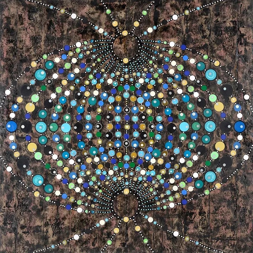 Terry Maker, “Field Lines (Blue),” 2021, mixed media.