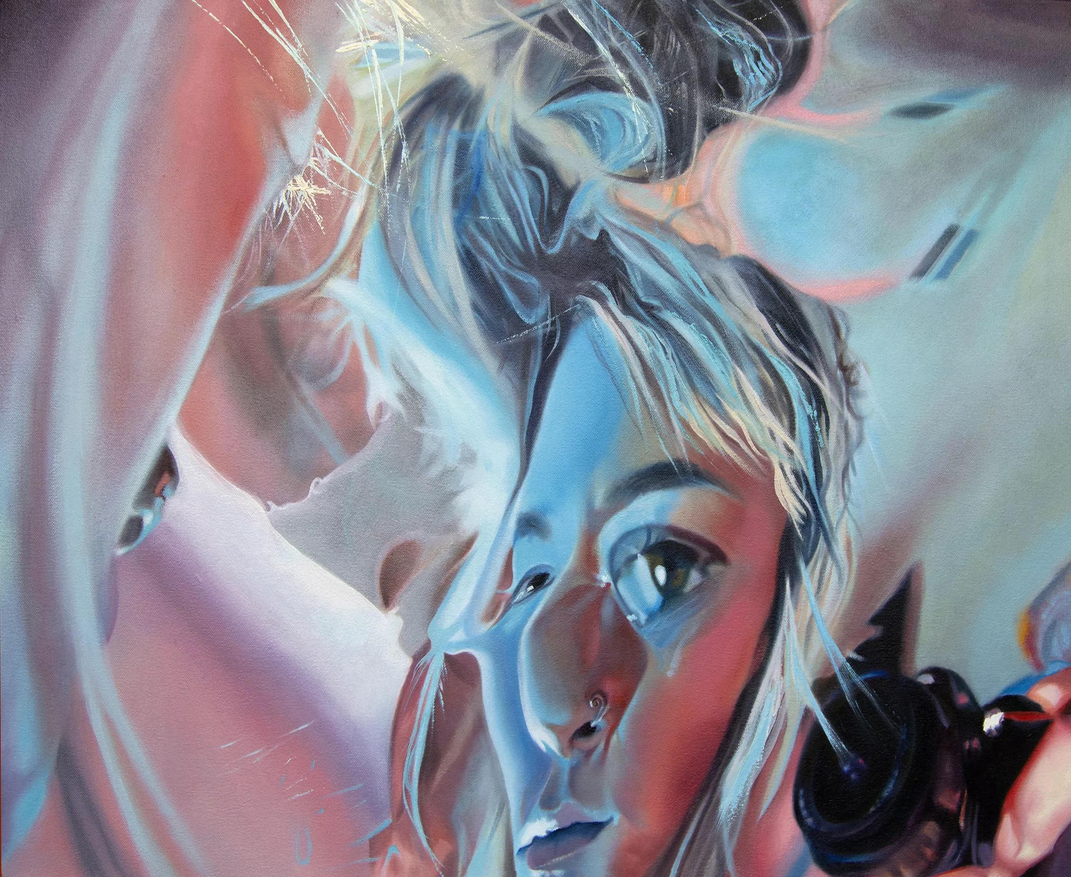 One might think that Jade Phillips’s world is one big funhouse mirror or bathed in psychedelic visions, but her warped, eddying oil portraits of faces in disintegration are inspired by psychoanalyst Jacques Lacan’s concept of the “mirror stage” – the moment when an infant realizes the face looking back from the glass is her own. What you see in these canvases might more likely be what happens when swirling thoughts draw a person inward while looking out, hyper-aware of how she appears to others. Gives ya the heebie-jeebies, but it is Halloween, and besides, these paintings simply sizzle.