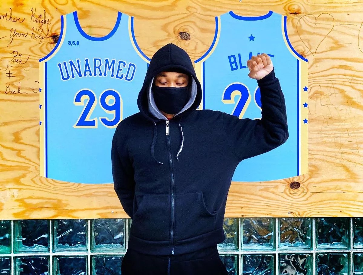 Social justice warrior, filmmaker and artist Raafi Rivero mounts an exhibition based on his powerful “Unarmed” series of sports jerseys commemorating Black victims of police violence. In addition to the full series of thirteen shirt designs, Rivero beefs up the show with installation work, a video documentary and a participatory Elijah McClain memorial.