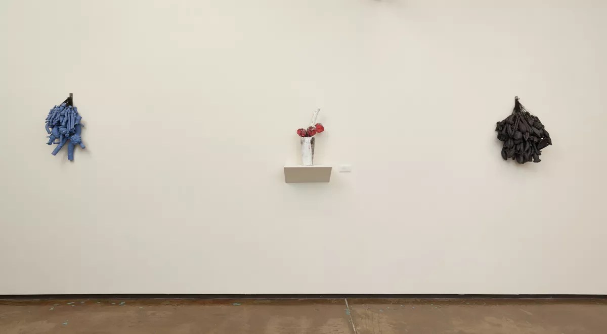 Installation view: Paintings by Rebecca Cuming, ceramic sculpture by David Hicks.