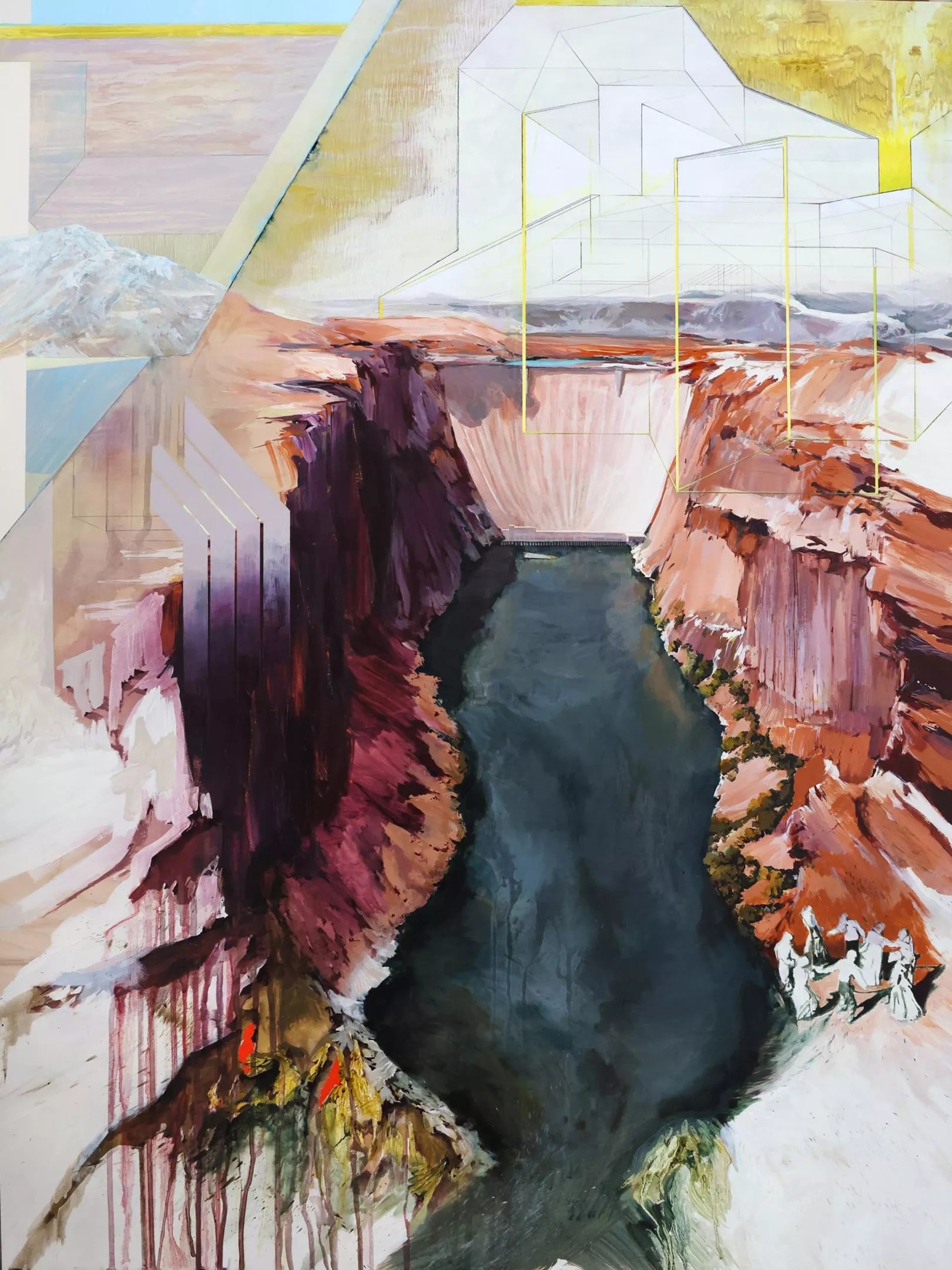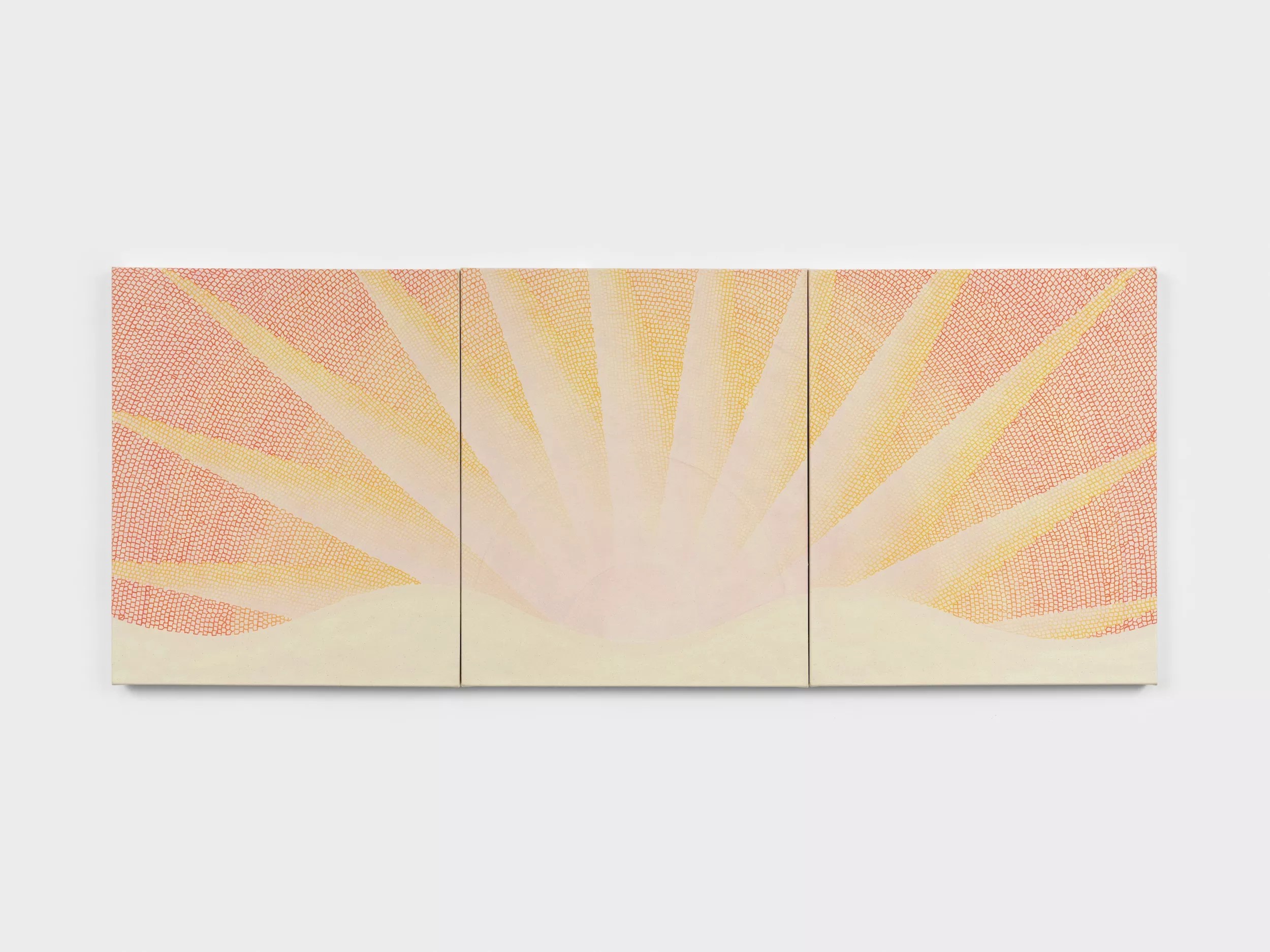 Jessica Cannon, “Day Pleats, Red Arch,” 2023, acrylic and iridescent pigments on canvas.