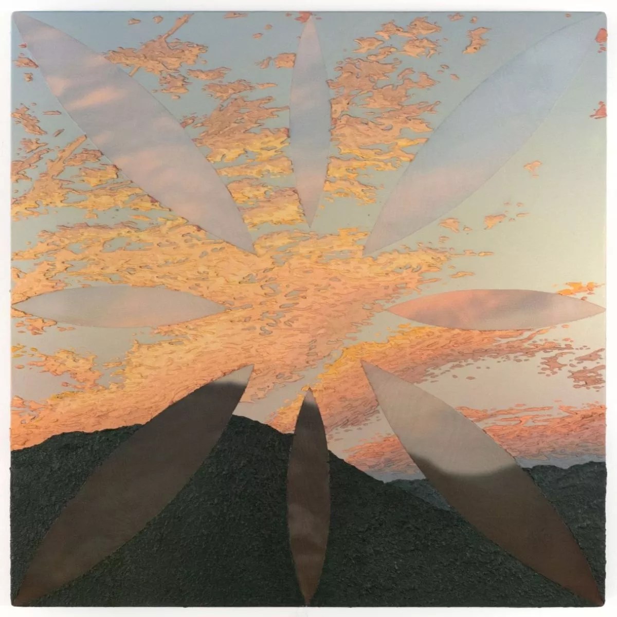 Saskia Fleishman, “Storm King (September 2020),” 2024, acrylic and locally sourced sand on digitally printed chiffon.