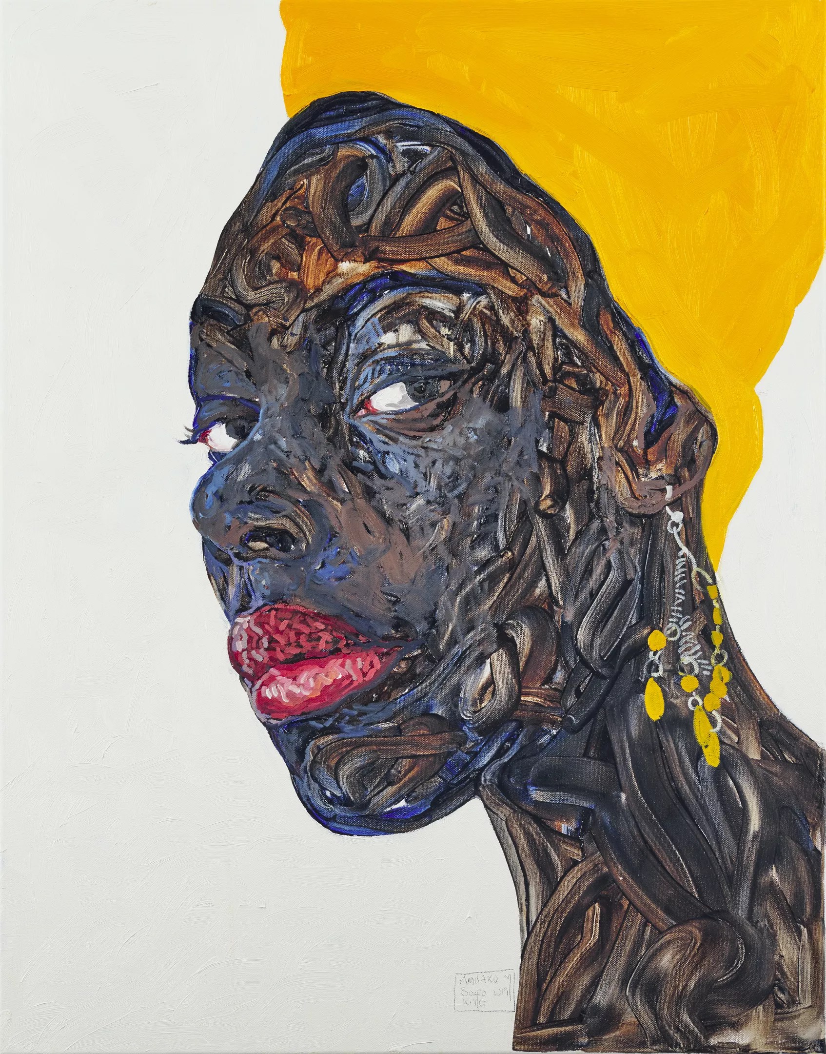 Amoako Boafo, “Bella Sontez,” 2019, oil on paper.