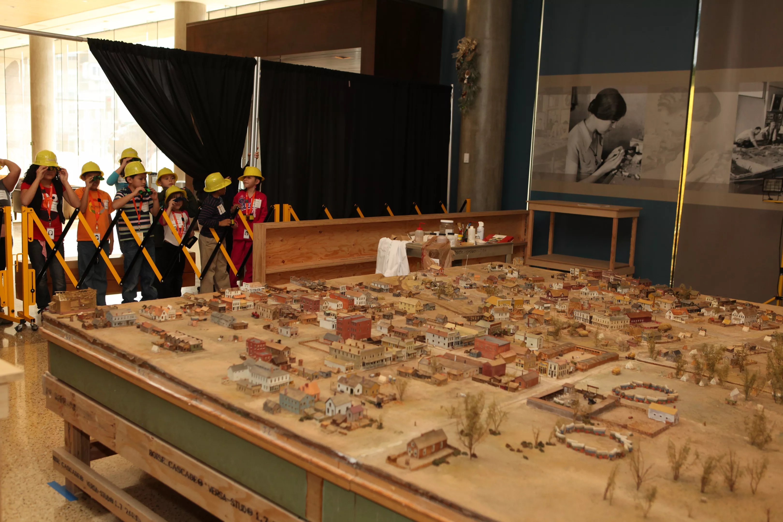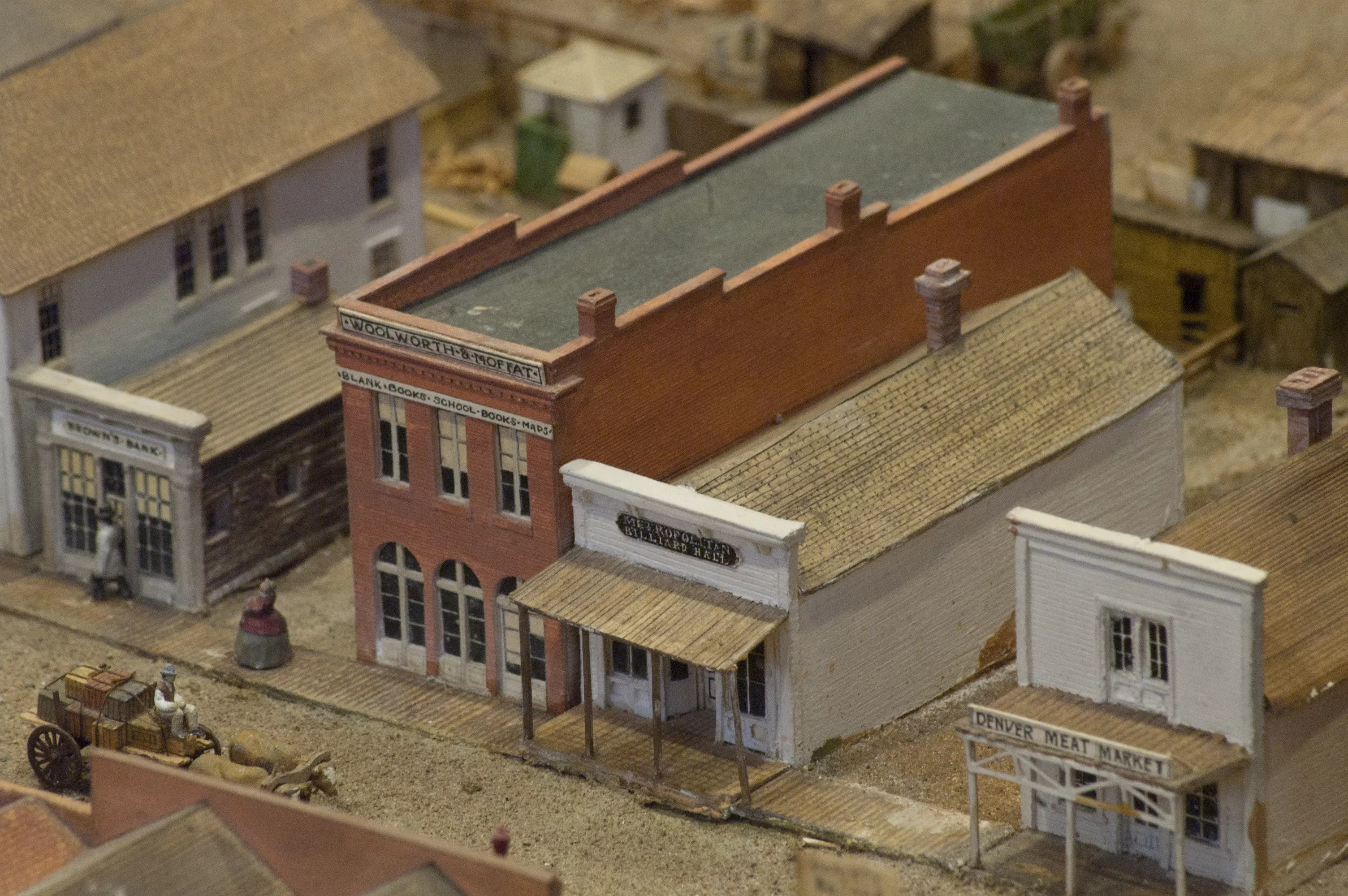 The diorama was created in the 1930s, funded by the Federal Emergency Relief Administration and its successor, the Works Progress Administration, to give jobs to out-of-work historians, artists, architects and craftspeople. (Other WPA projects here included the formal creation of Red Rocks Amphitheatre.) The diorama depicts Denver as it looked in 1860, barely a year after its founding, and includes 350 miniature structures: cabins, frame and brick buildings, tents, bridges, outhouses, saloons, hotels, theaters and an encampment of Arapaho people.