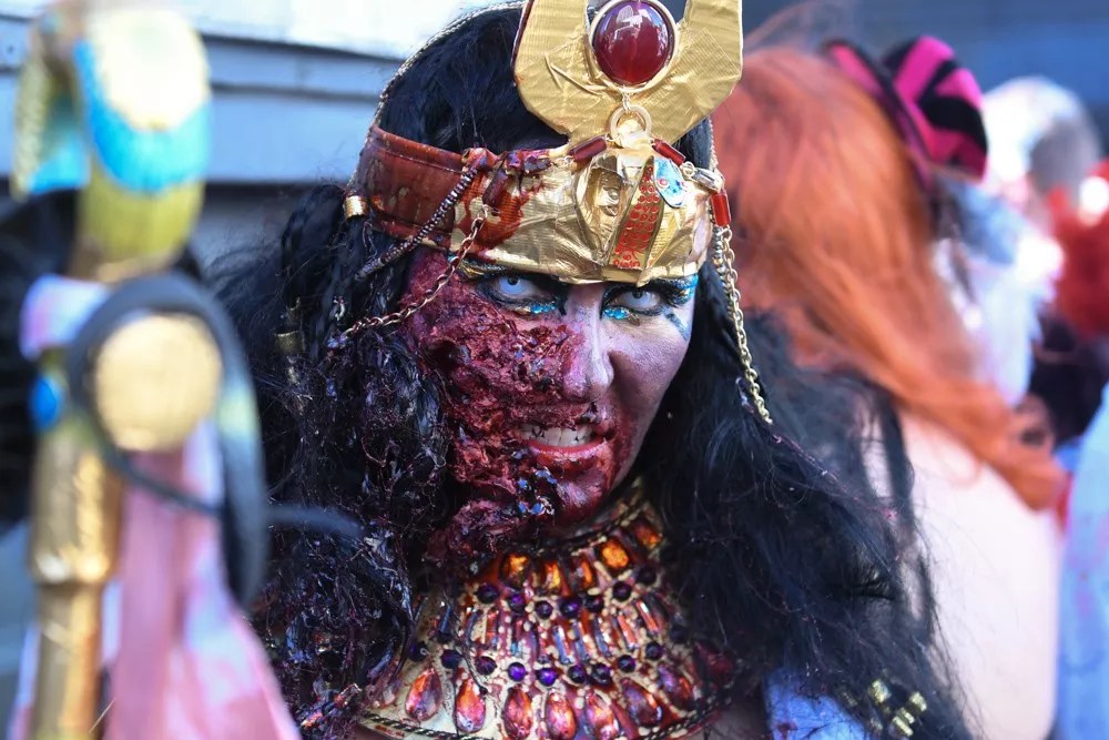 Funny or terrifying? We can’t decide. Either way, this magnificent monster showed up at Denver’s zombie crawl, and as ferocious as it appears, we’re pretty sure it was lost on its way to another Halloween Party.