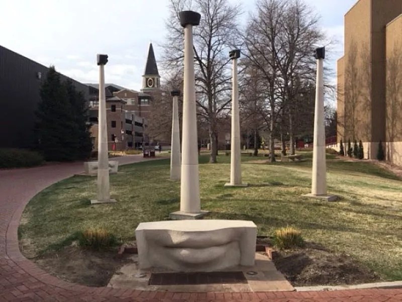 As I sit outside the Ritchie Center at the University of Denver, I think of lips. Not my own, of course, weathered by decades of self-importance and buffoonery, but the lip sculpture upon which I sit.