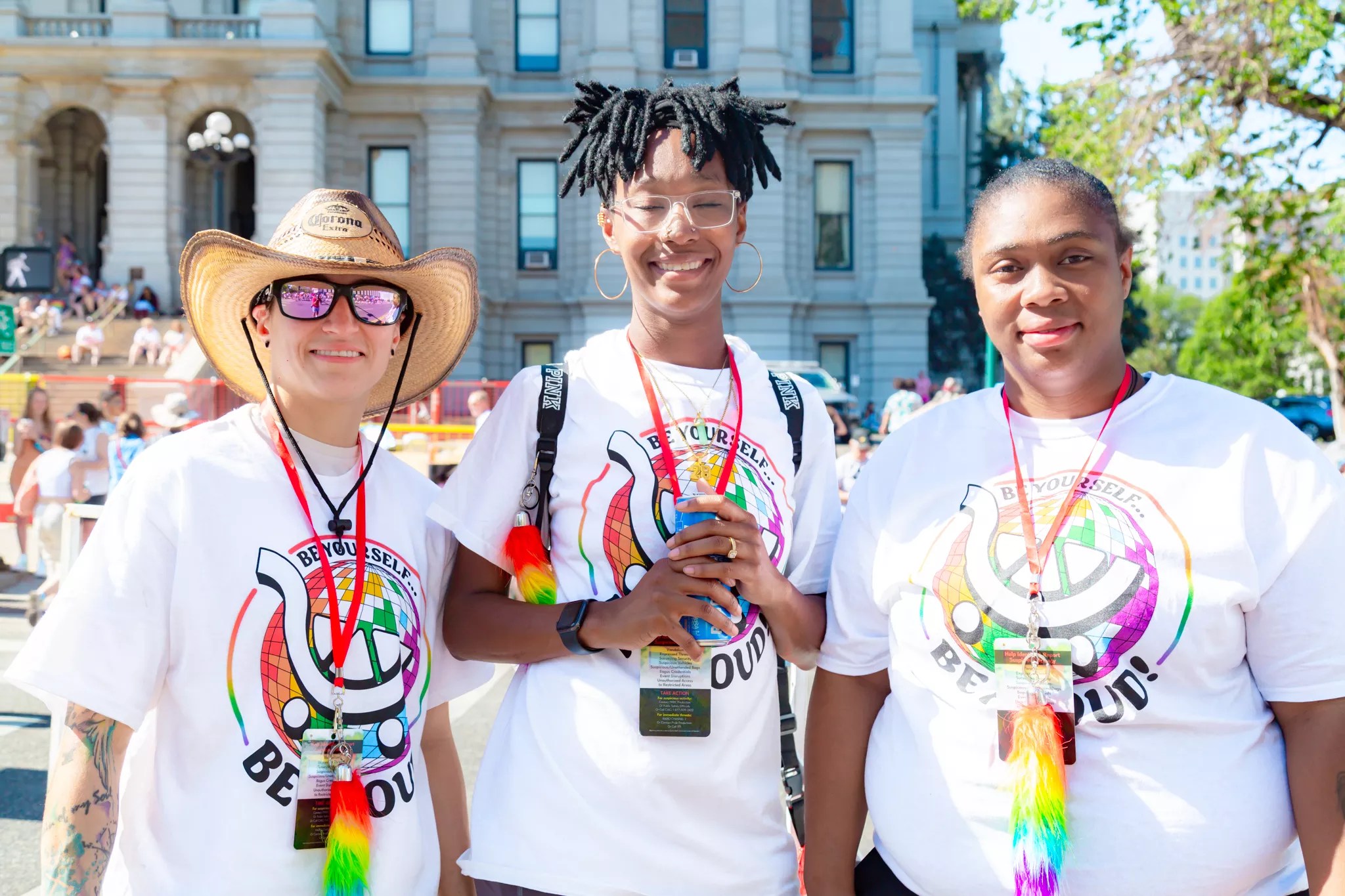 A group of PrideFest volunteers smile for a portrait during Denver PrideFest.
