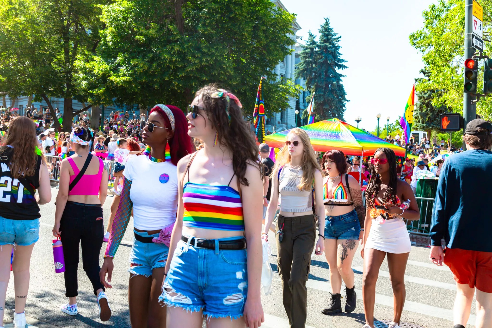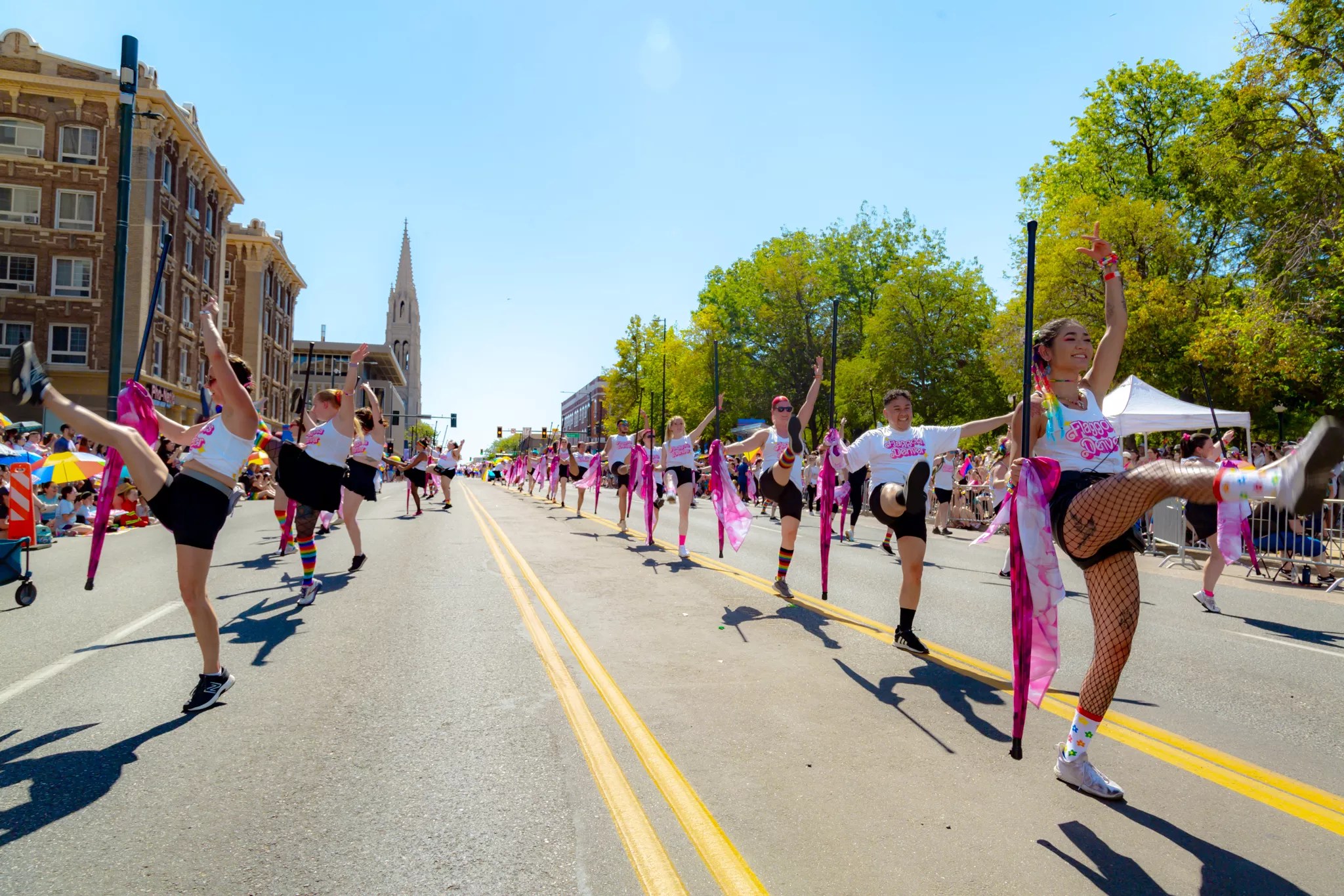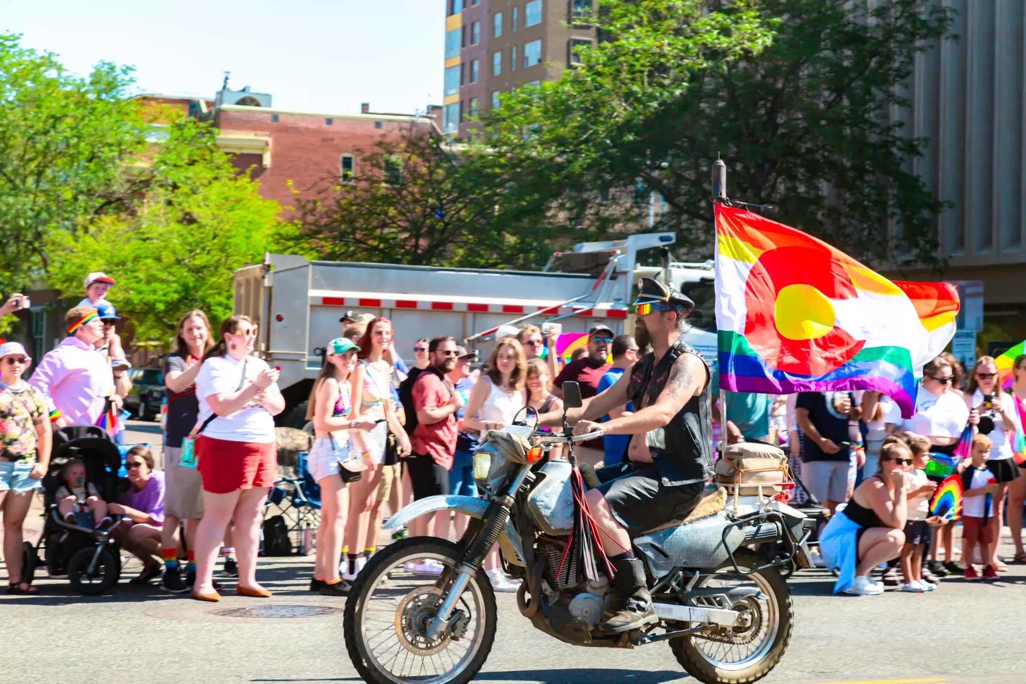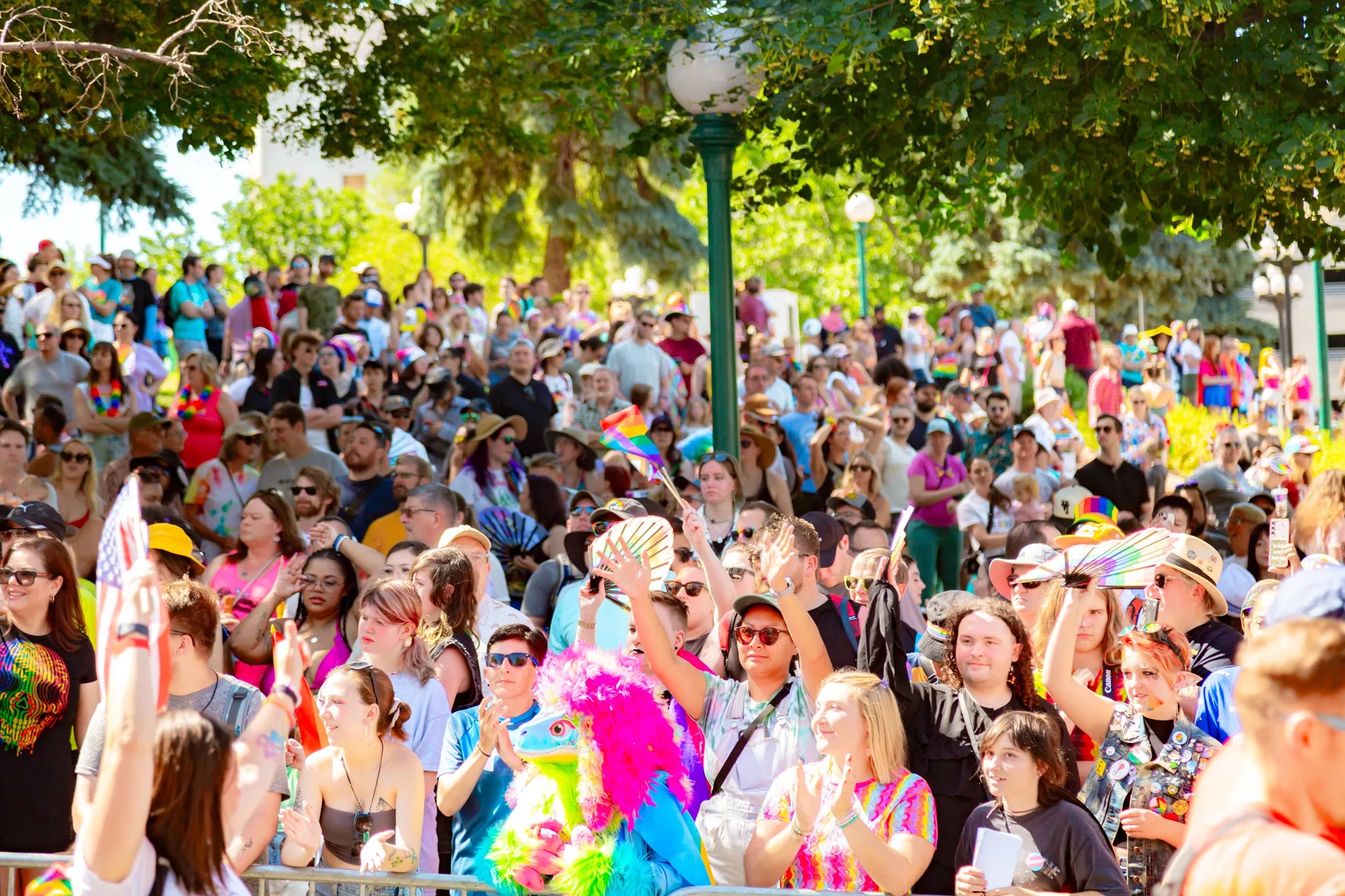 Parade attendees participating in the Denver PrideFest.