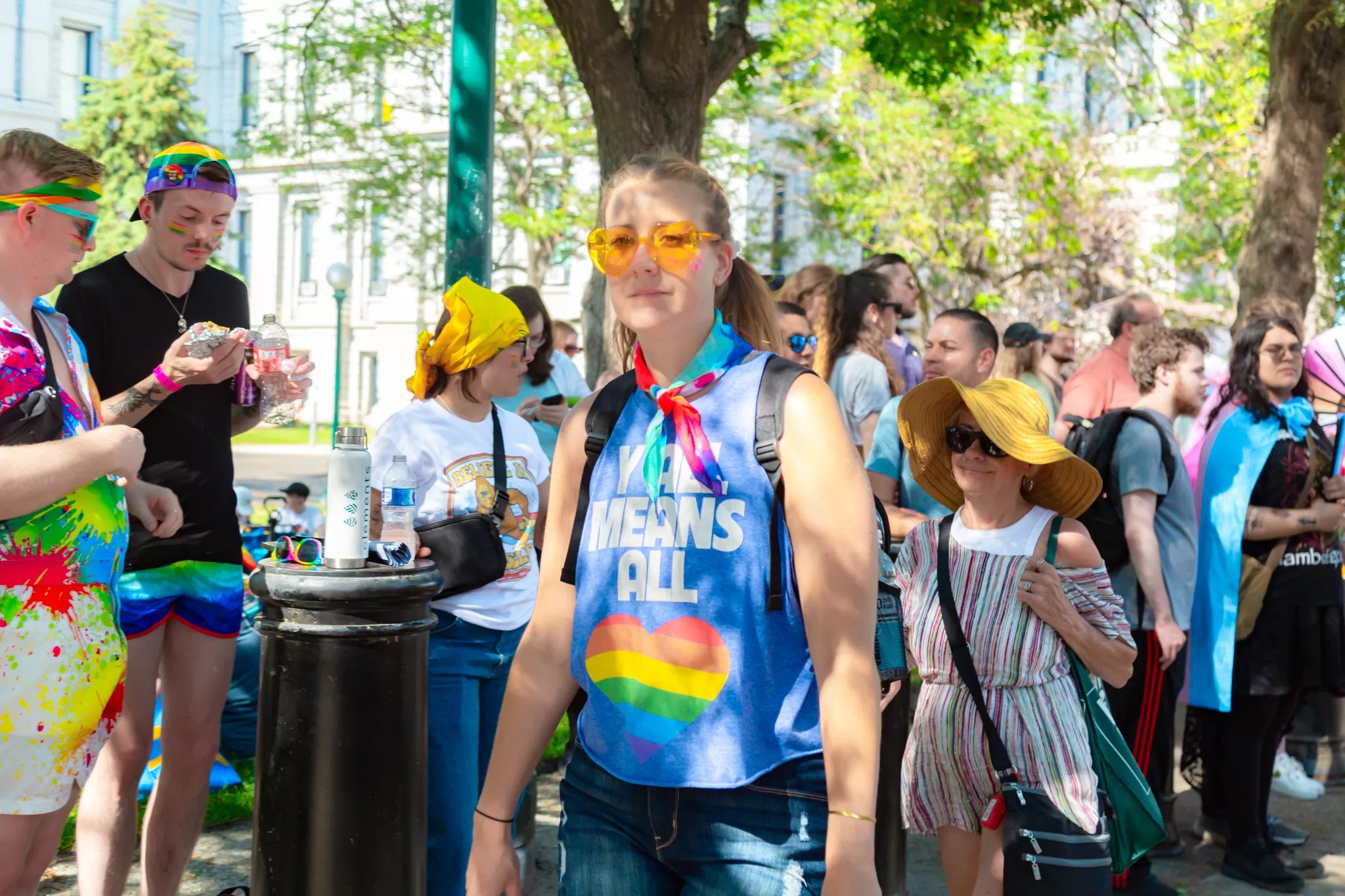Attendees walking through the crowd at PrideFest.