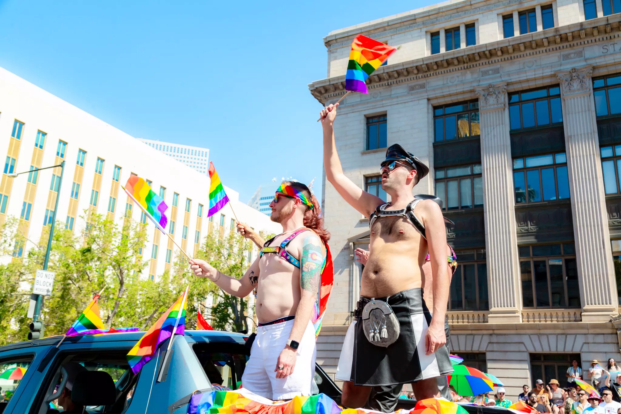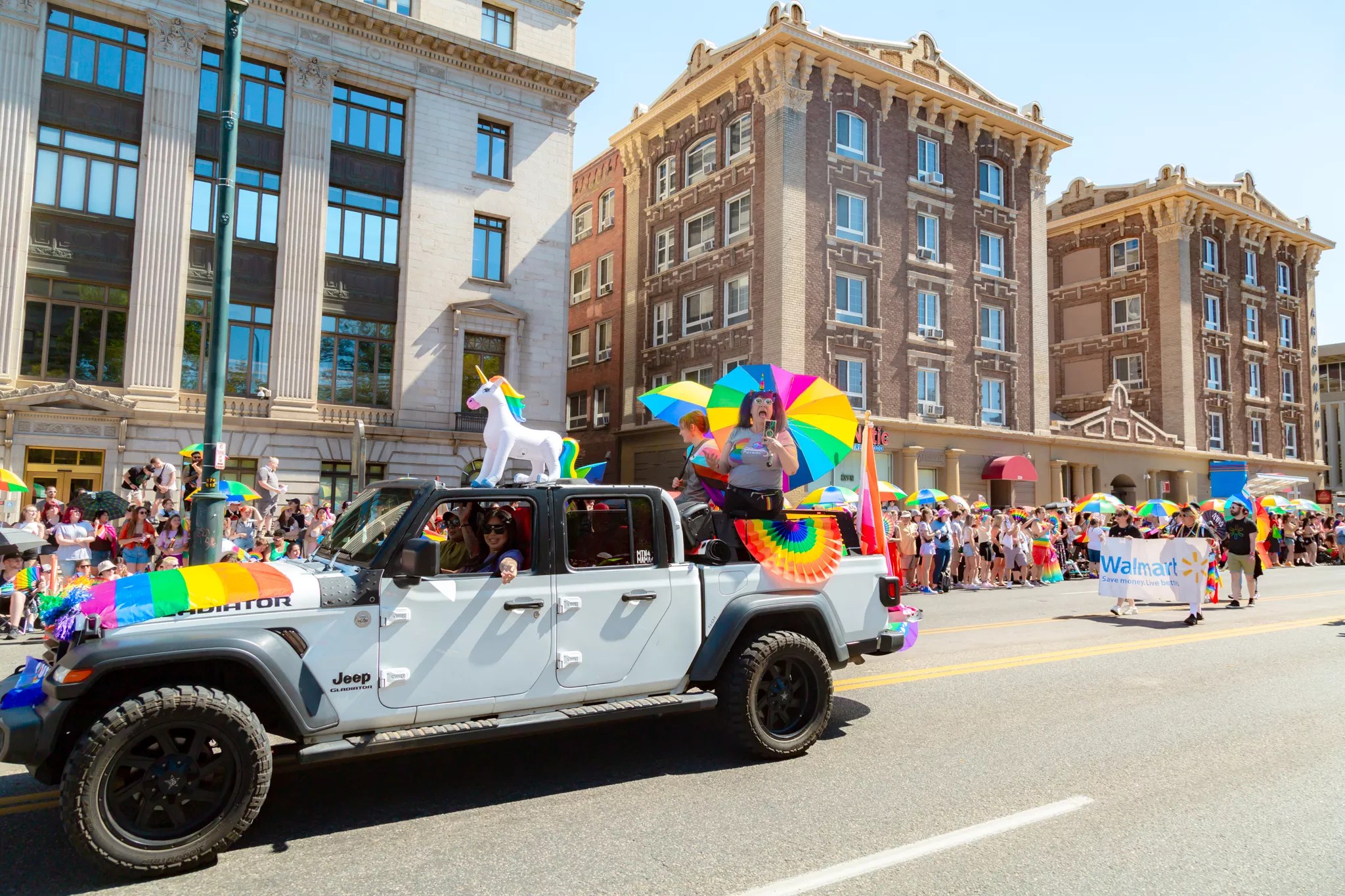 A truck decked out in Pride gear for Denver PrideFest.
