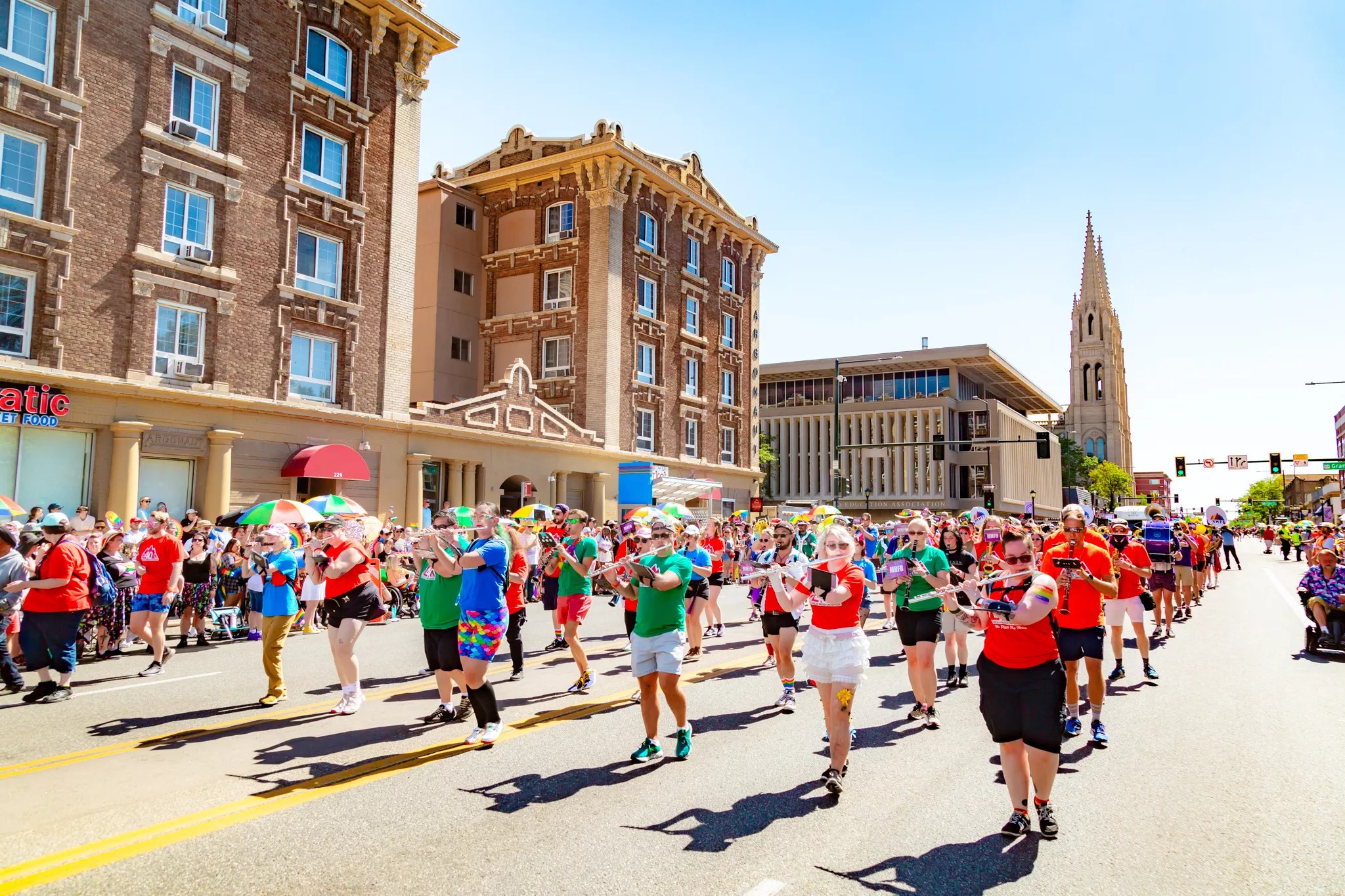 A marching band during the Denver PrideFest parade.
