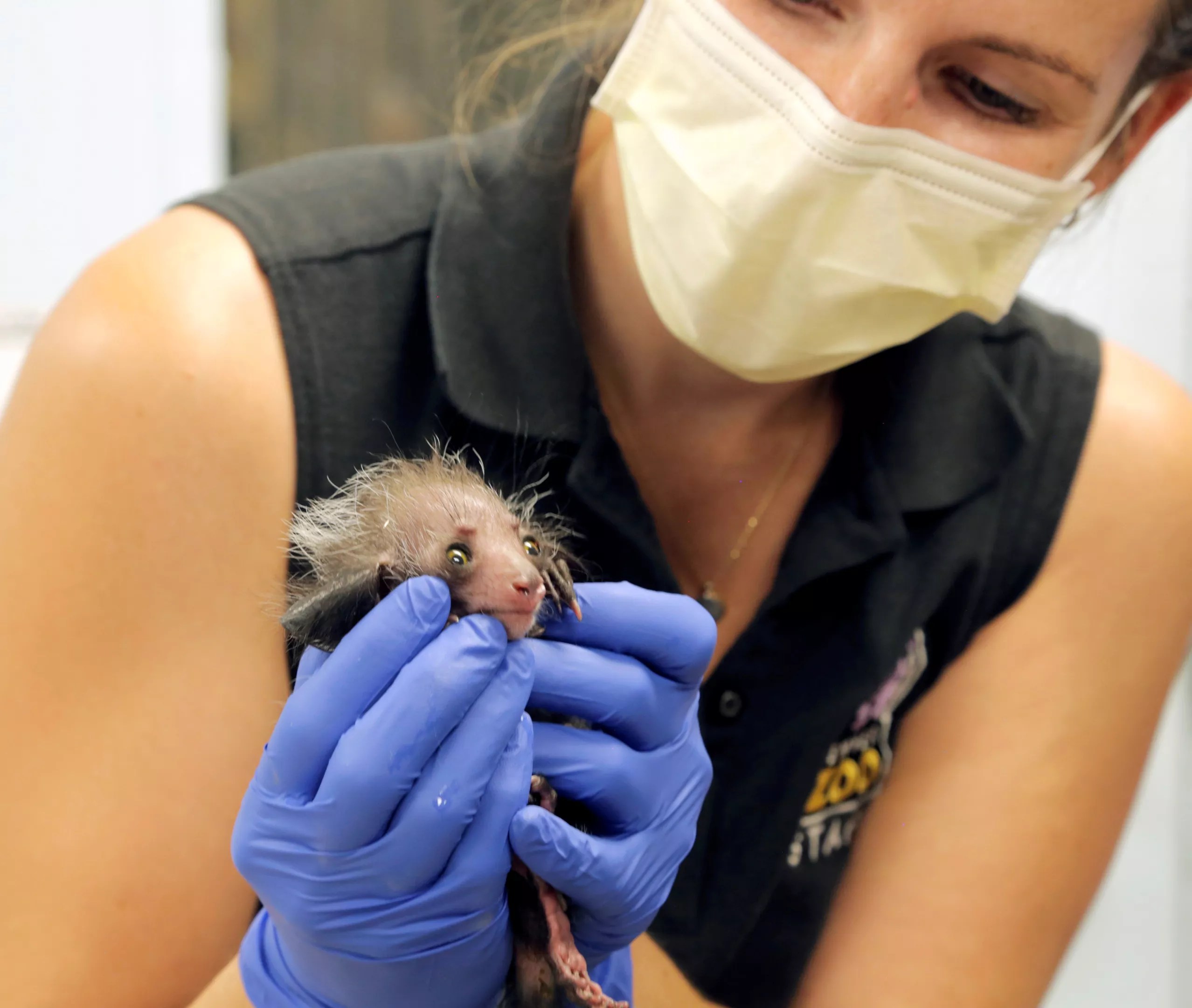 “They are one of the most distinctive-looking animals on the planet due to a number of unique adaptations, including coarse dark hair, long bushy tails, rodent-like teeth, piercing eyes and skeletal hands that feature extra-long middle fingers with hooked claws,” according to the Denver Zoo. “Aye-ayes are born weighing just a few ounces and reach up to five pounds as adults.”