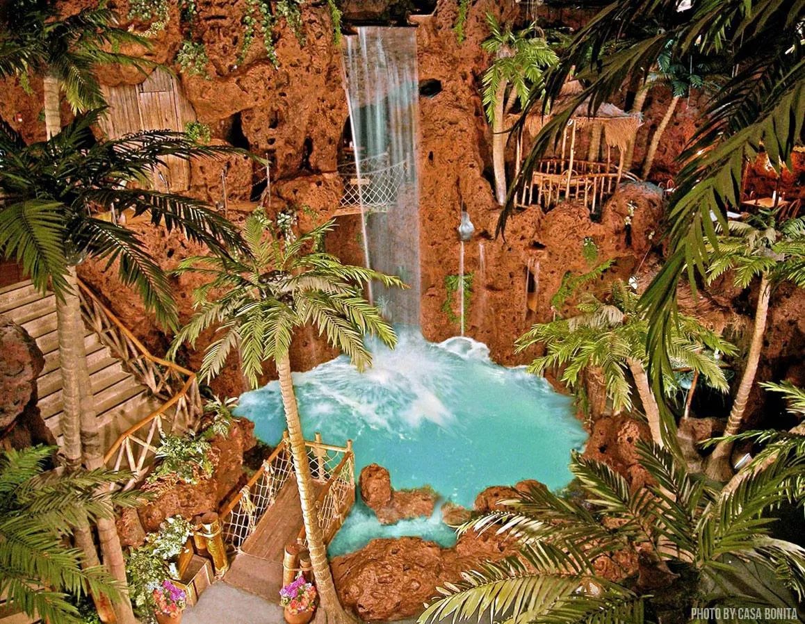The eatertainment landmark (a historic site, thanks to a Lakewood decree and its South Park pop-culture pedigree) pumps over 26 million gallons of water through its system every year. The waterfall itself was designed to resemble the cliffs of Acapulco and are thirty feet high. Divers plunge from that height into the fourteen-foot-deep pools, to entertain and take visitors’ minds off the price tag on that terrible taco.