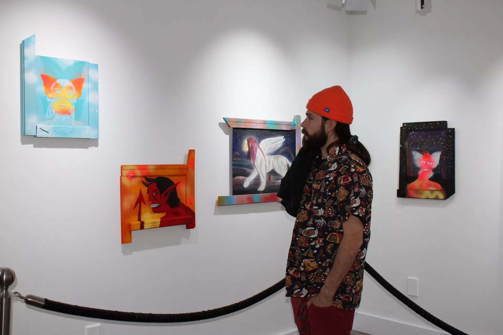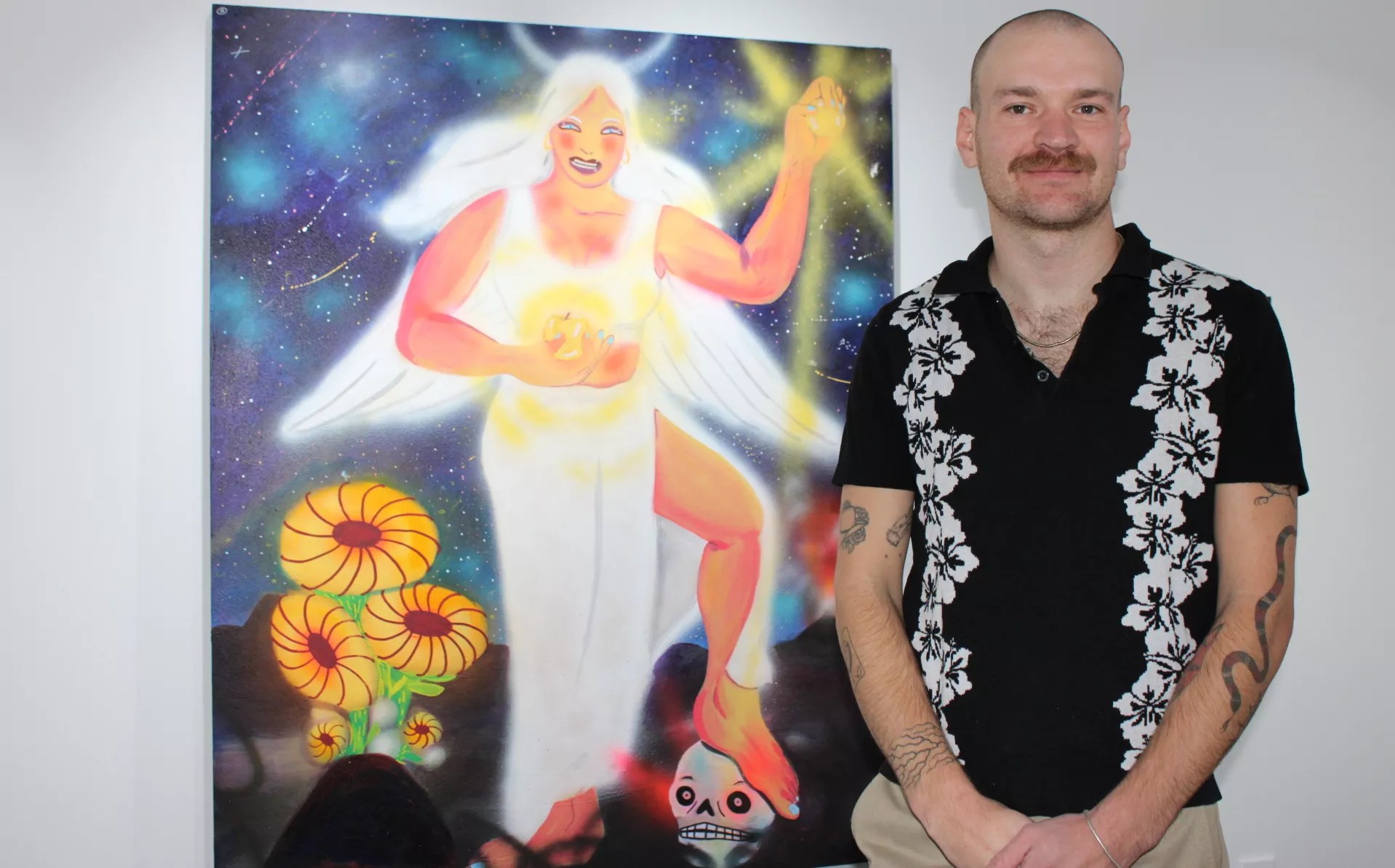 The Arizona-born artist, who says his hobbies include wandering around town aimlessly, has always been immersed in the world of art, thanks to his decorative painter dad. “Growing up, there were always art supplies and stuff around,” he says. “It started in childhood – I was always drawing and stuff like that.”