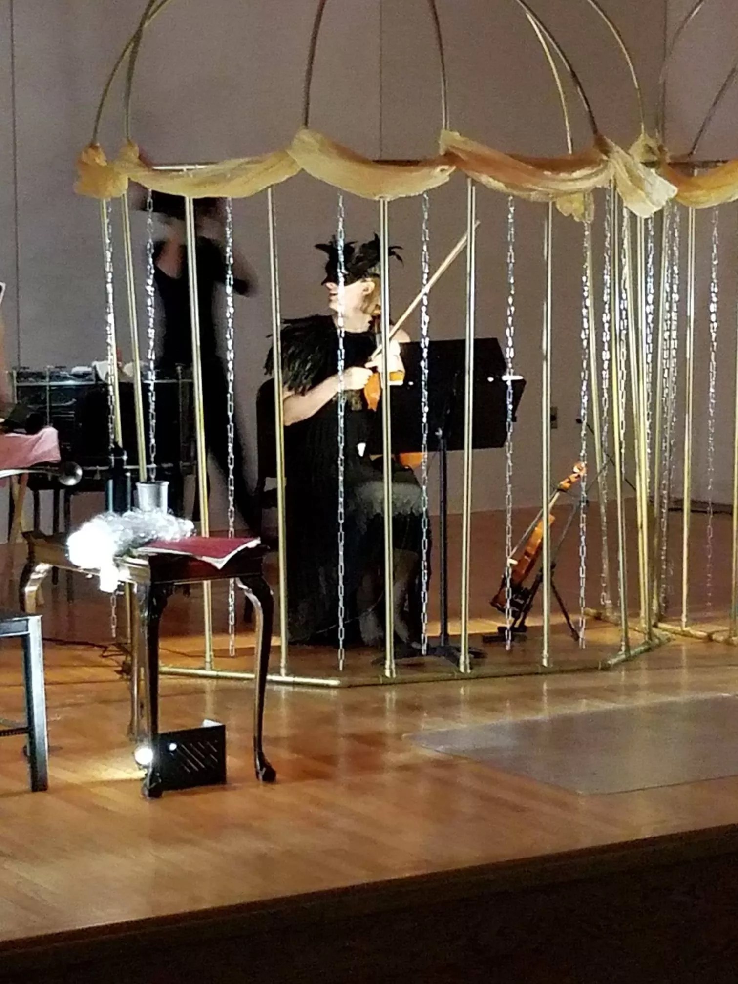 The Playground will be handing out masks and birdcall whistles to blow on cue when the performers do the same. Spoiler: A violin will be smashed. Adds Kehn:”We’re also using cell phones in reference to Twitter.”