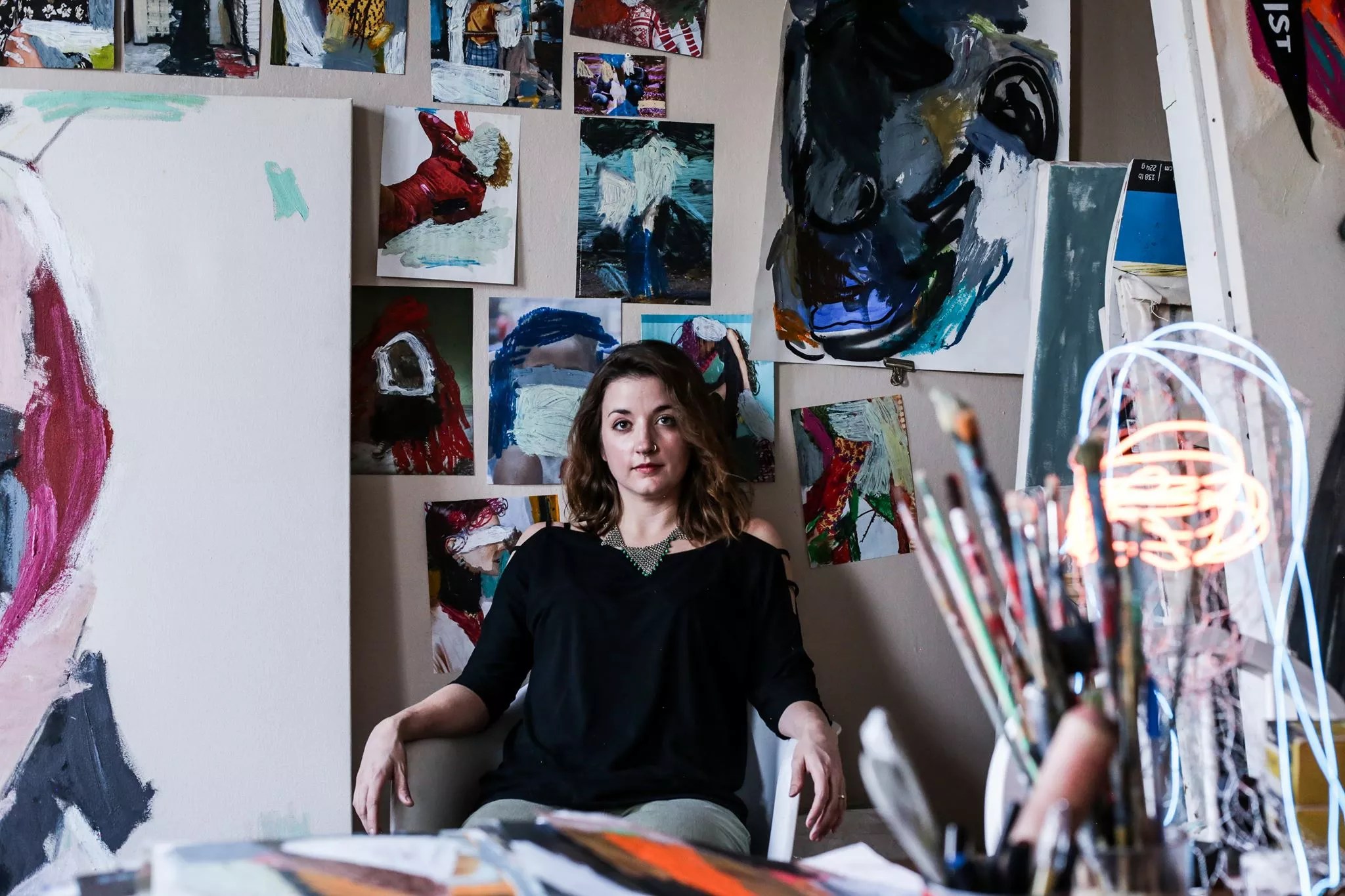Laura Krudener turns over her RiNo gallery walls at ATC Den to a lush collection of painter Kaitlyn Tucek’s abstract paintings, heart drawings and installation work for the next couple of months. Based on the artist’s own personal experience of bouncing back from a low point while navigating motherhood and her role in life as a woman, It’s All Coming Apart tells Tucek’s story of struggles and resilience in living color.