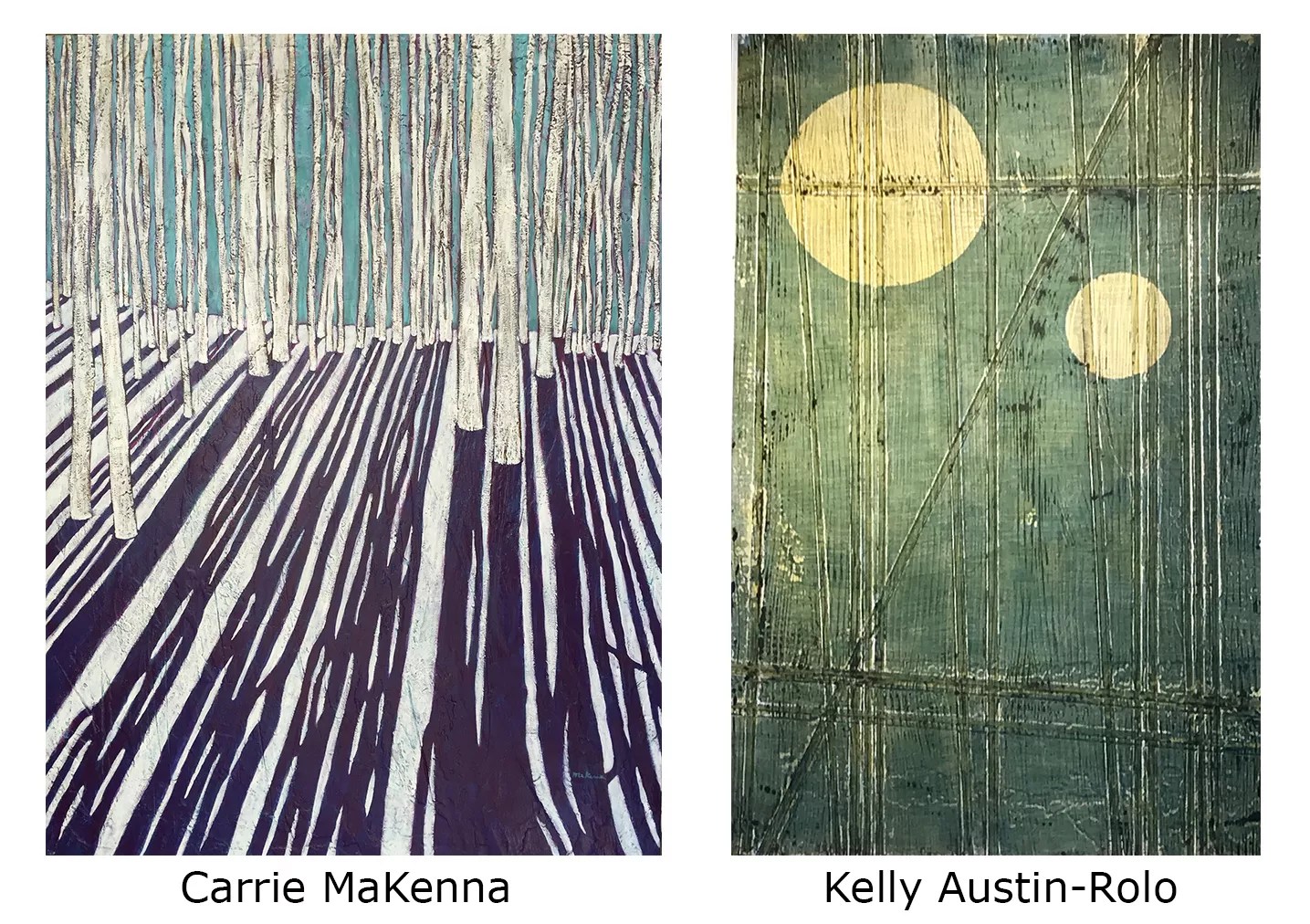 D’art gets down to business after its introductory member show with work drawn from the textures of nature by Carrie MaKenna and Kelly Austin-Rolo. Both artists build up their canvases from a base. MaKenna layers found materials from nature atop acrylic paint and Austin-Rolo’s works are scraped or torch-fused or layered with beeswax – or maybe all three and more.