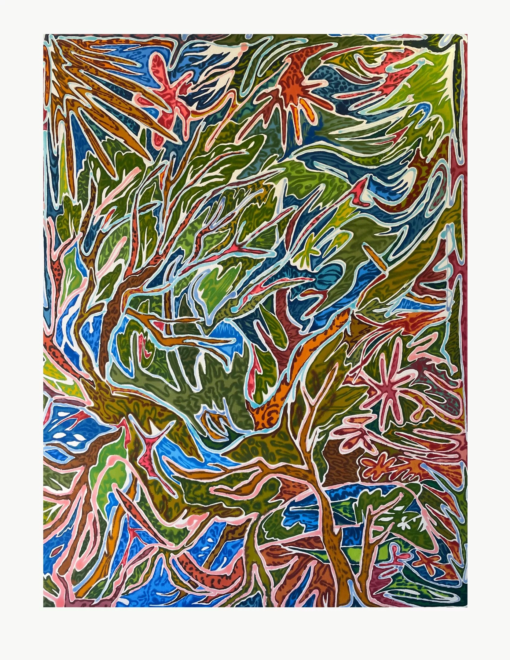 Rule Denver presents Libyan/Indigenous Yurok painter Saif Senussi Azzuz’s organic abstract paintings inspired by the reaching branches, aging textures and functionality of the olive tree, as well as Palestinian poet Mahmoud Darwish’s poem, “The Second Olive Tree,” an ode to the tree as a symbol of peace in a place torn by war. The result is a visual representation of the living thing thriving and pulsing in rivers of color.