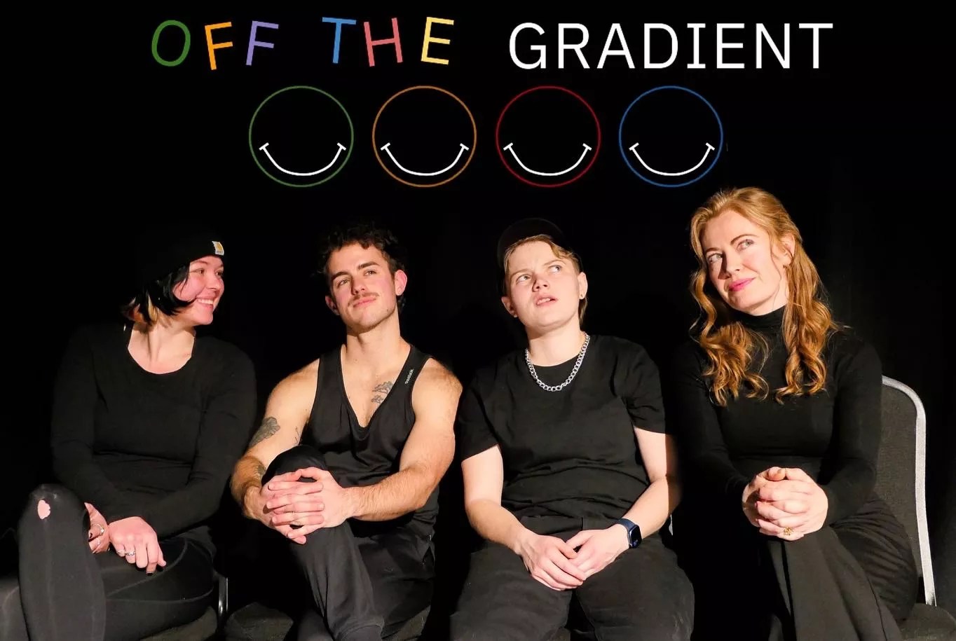 Routon thought of people in her life that she wanted to speak with and created a uniform list of questions about their experiences. Although the names have been changed, everything else remains the same. Off the Gradient immerses audiences in the lives of Mark (Wes Mysinger), Madonna (Stephanie Dees), Davey (Haley Barth) and Shirley (Moriah Fine) as they recount their journey to recovery.