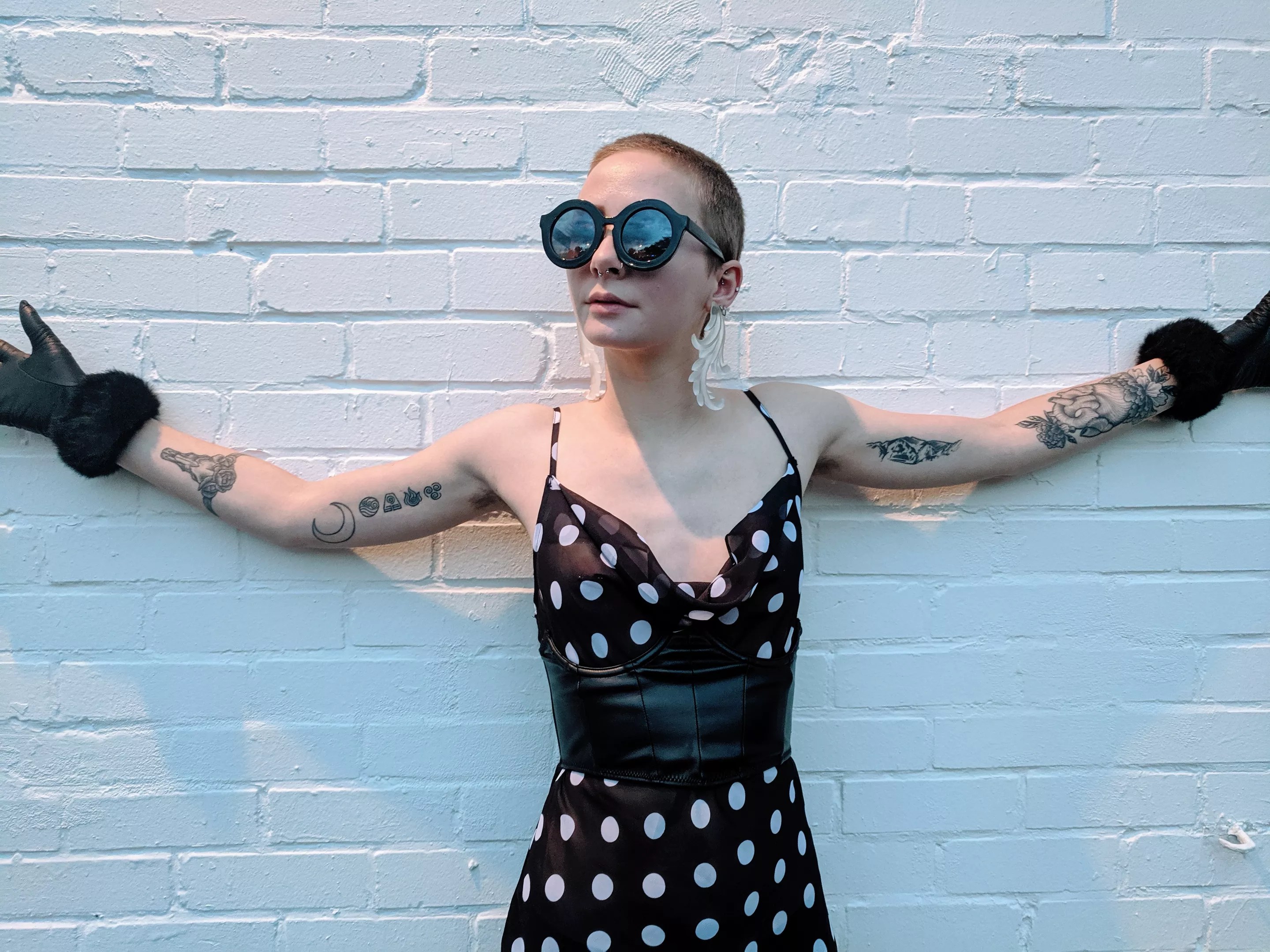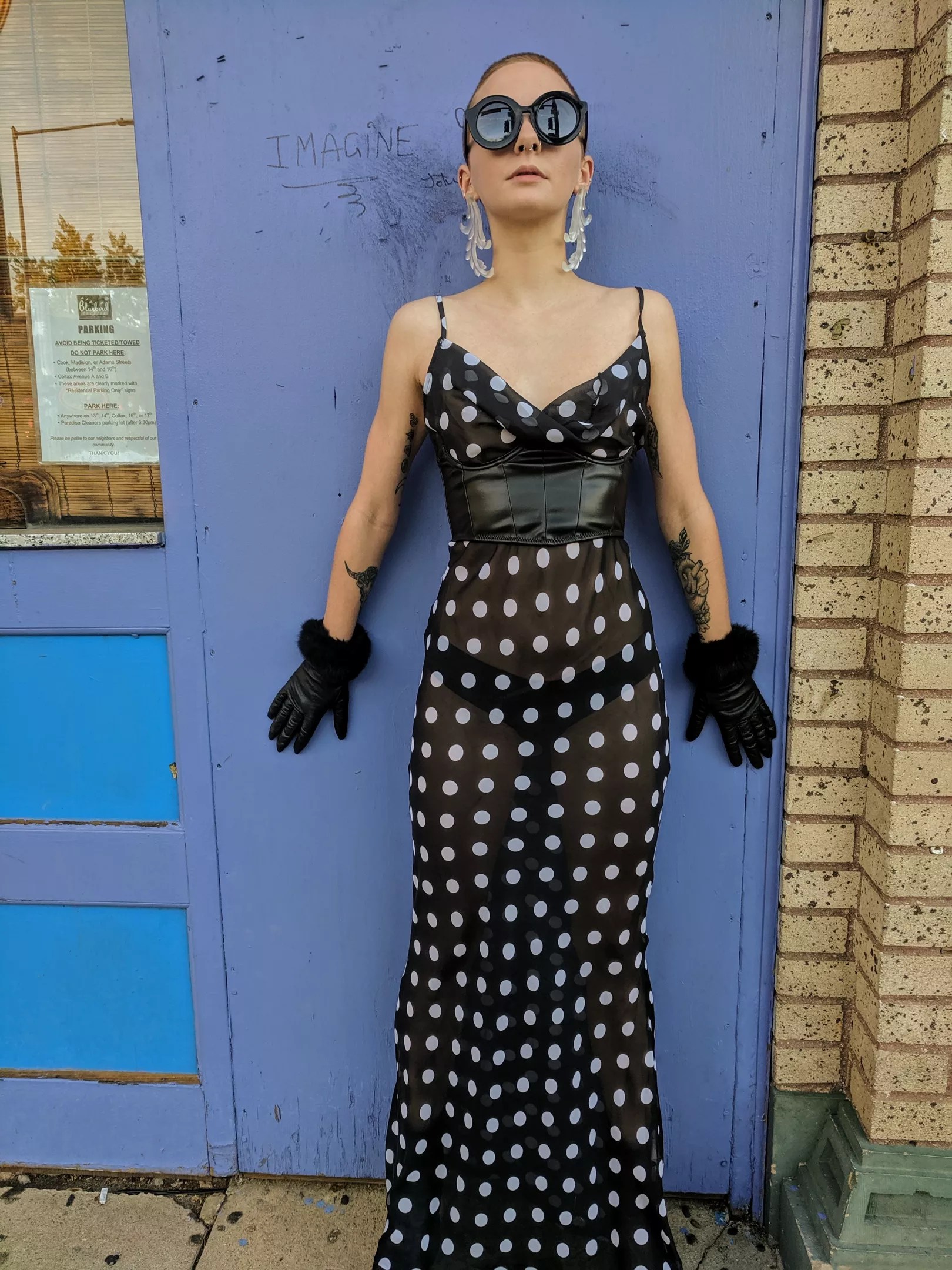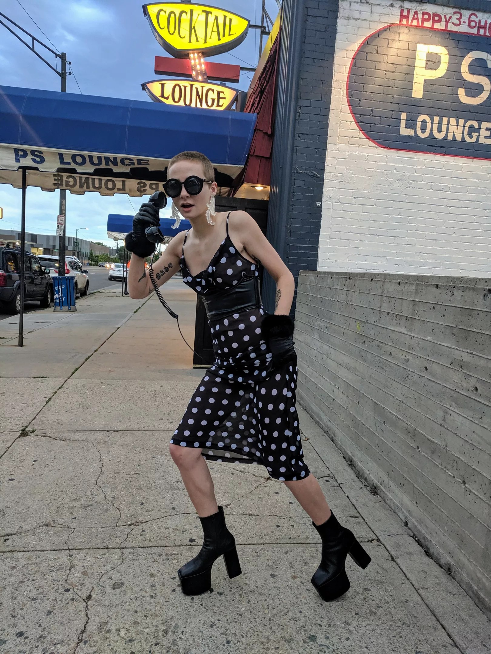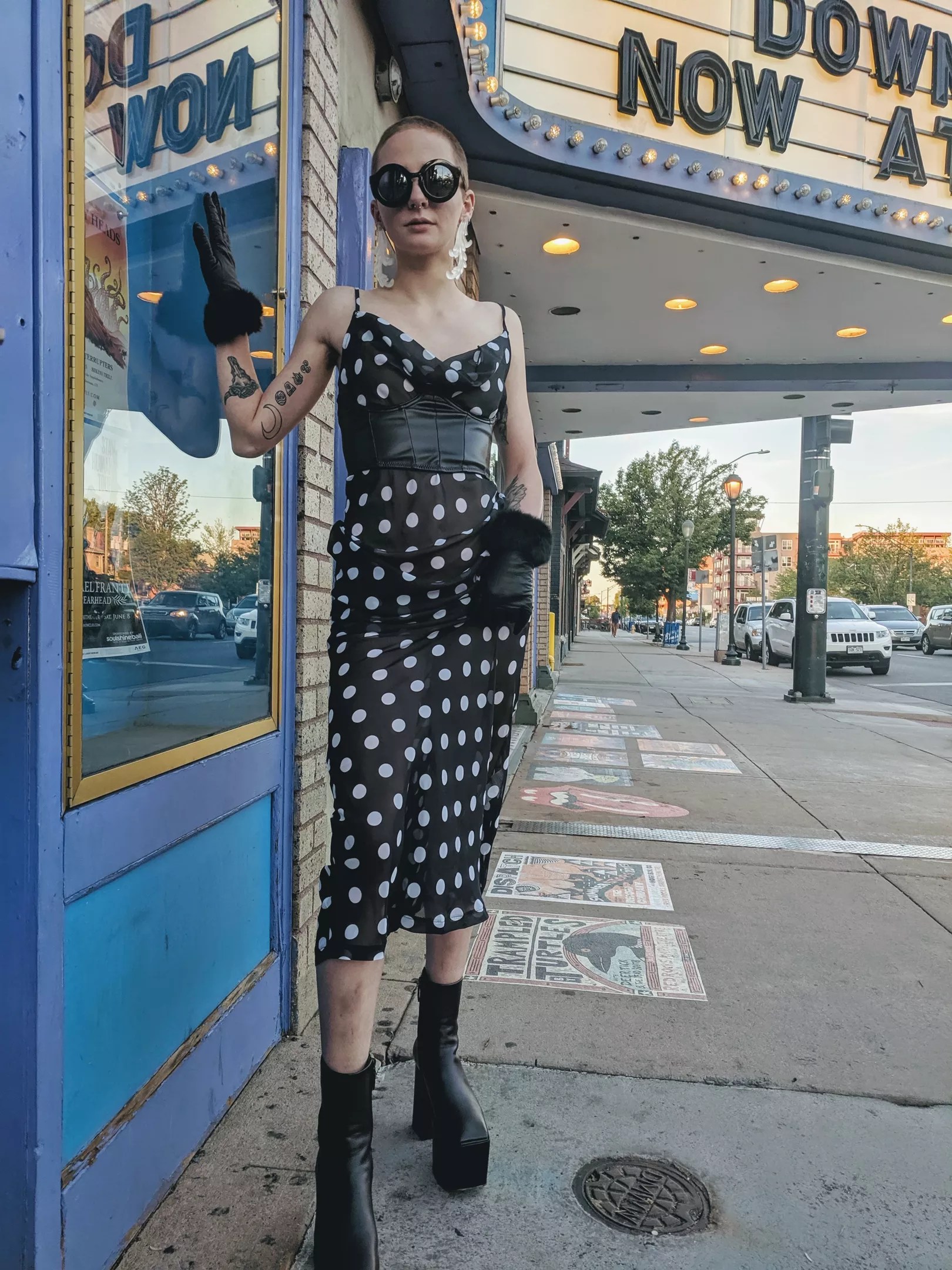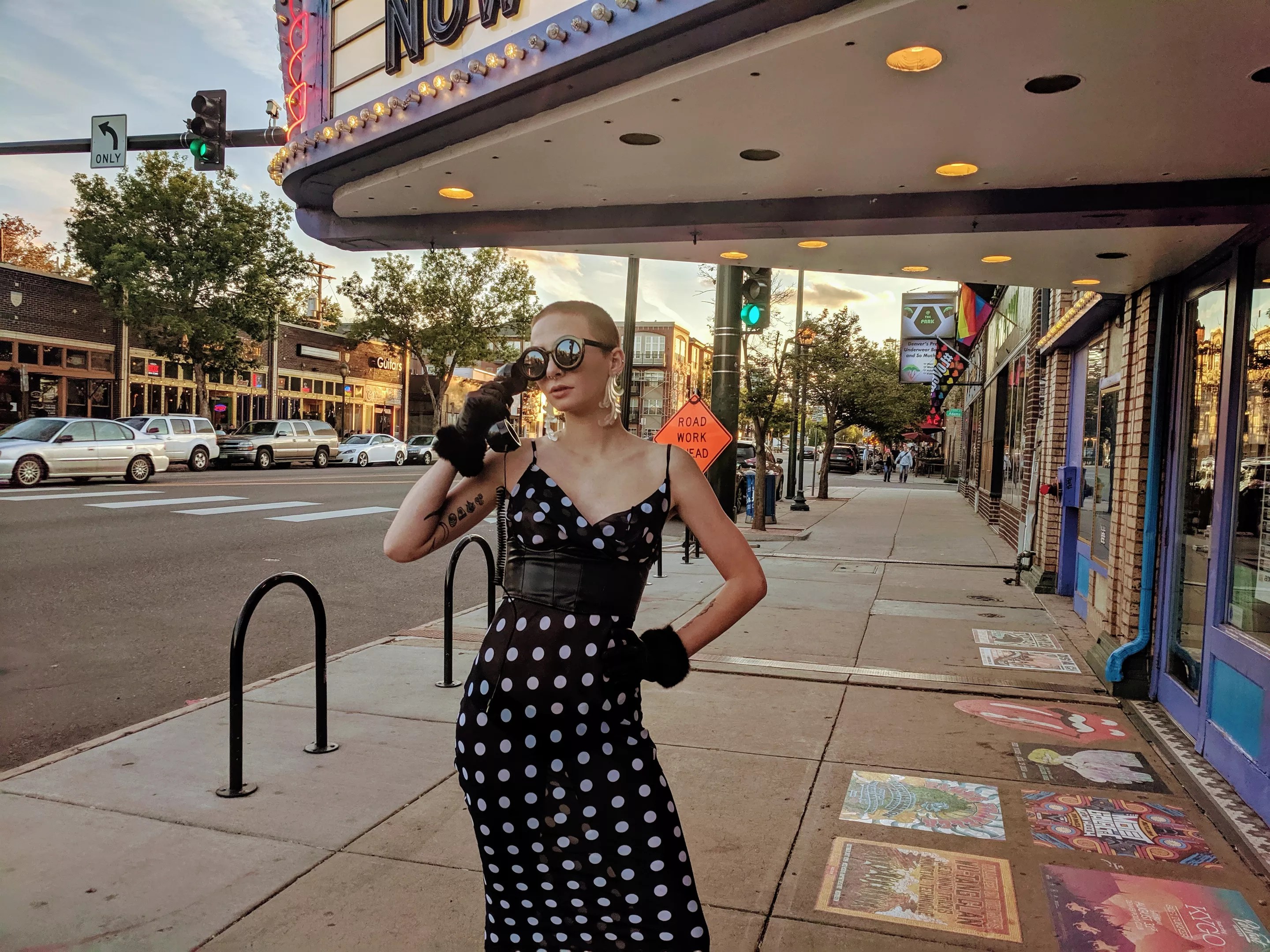 We spotted Saludes on East Colfax Avenue, wearing a polka-dot dress, black leather accessories and towering boots. A true style chameleon, she spoke with us about her style inspirations and her perspective on fashion and life.