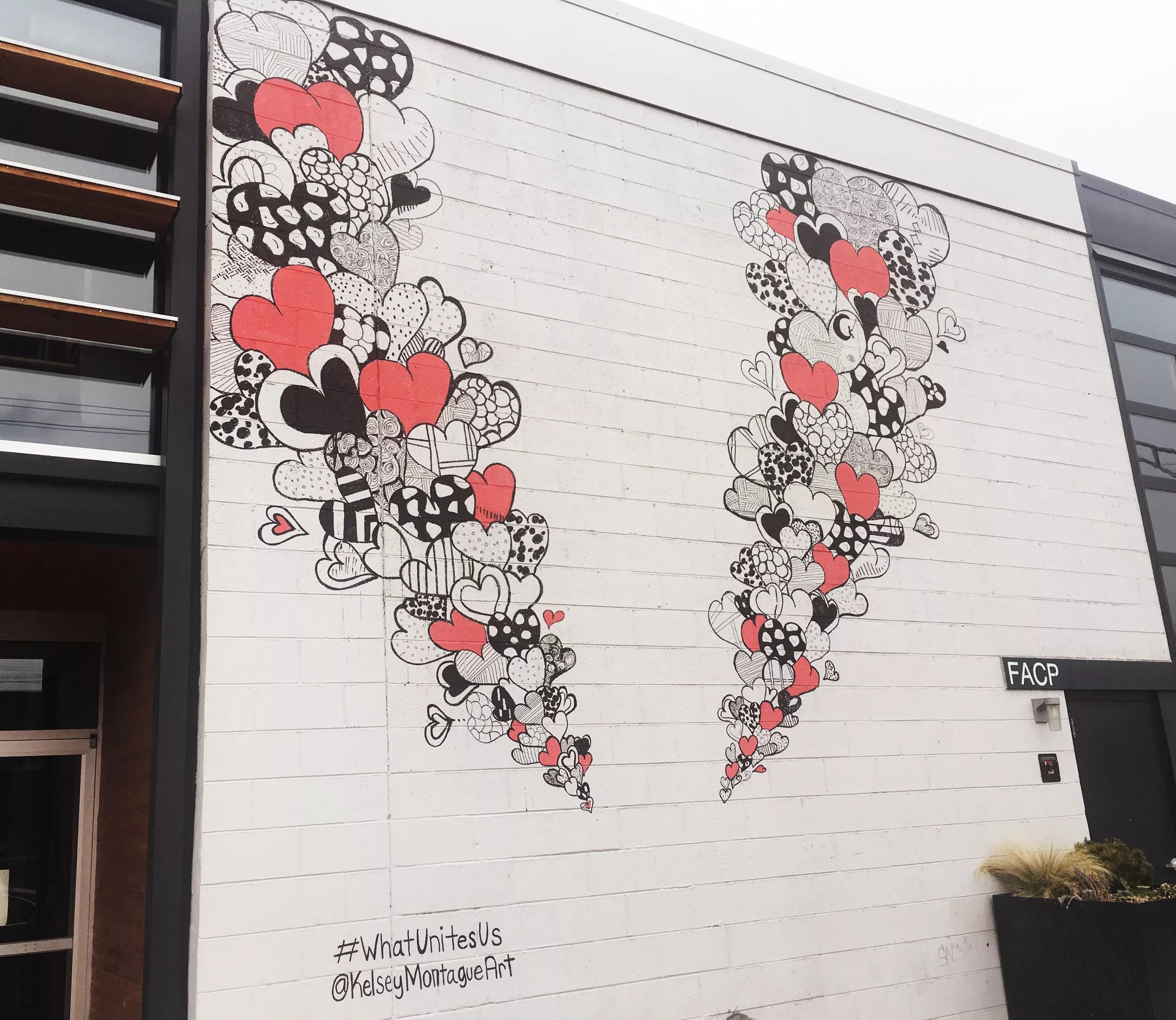 Kelsey Montague is an uplifting Colorado artist whose murals can be found sprinkled around the Denver metro area. She just completed her first street-art piece of 2017, in the RiNo Art District: wings made of red, black, white and patterned hearts that she hopes will unite the city and country during cultural turmoil. #WhatUnitesUs is on the east-facing wall of Il Posto, at 26th and Larimer streets.