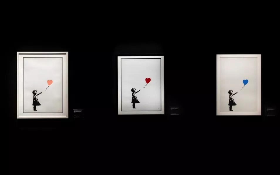 Art of Banksy carries three copies of his work, “Girl With Balloon.”