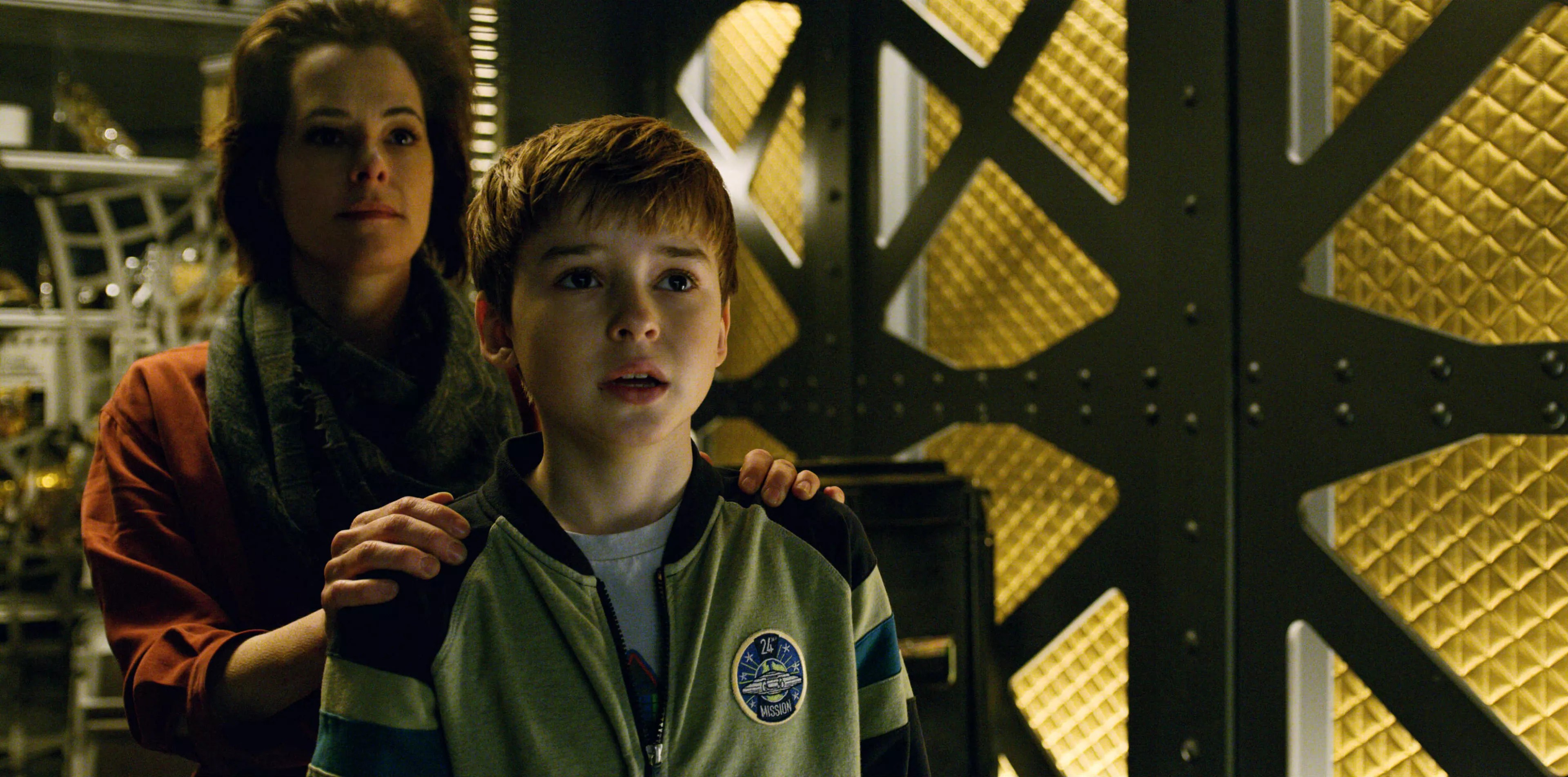 Those who remember the original 1960s series – or were raised by parents who did – probably hold in their hearts a vision of its comical atomic-age robot, often just called “Robot,” flailing those noodle arms to gurgle “Danger, Will Robinson” in mechanical tones every time the child hero ran afoul of trouble. The reboot’s version is light-years beyond the original in terms of technology and design, meant to be potentially threatening like a weapon of war and realized onscreen through a mix of CGI and practical effects that makes it easy to accept it as a character. (An all-CGI robot would likely feel too detached.) It starts out hostile – the very reason everyone’s lost in space. This robot attacks the Robinson family’s colony as it’s in transit to Alpha Centauri and then crash-lands with them – and a few other families – on a harsh but habitable planet, where little Will saves its life and reprograms it from foe to friend. Think The Iron Giant meets Harry and the Hendersons.