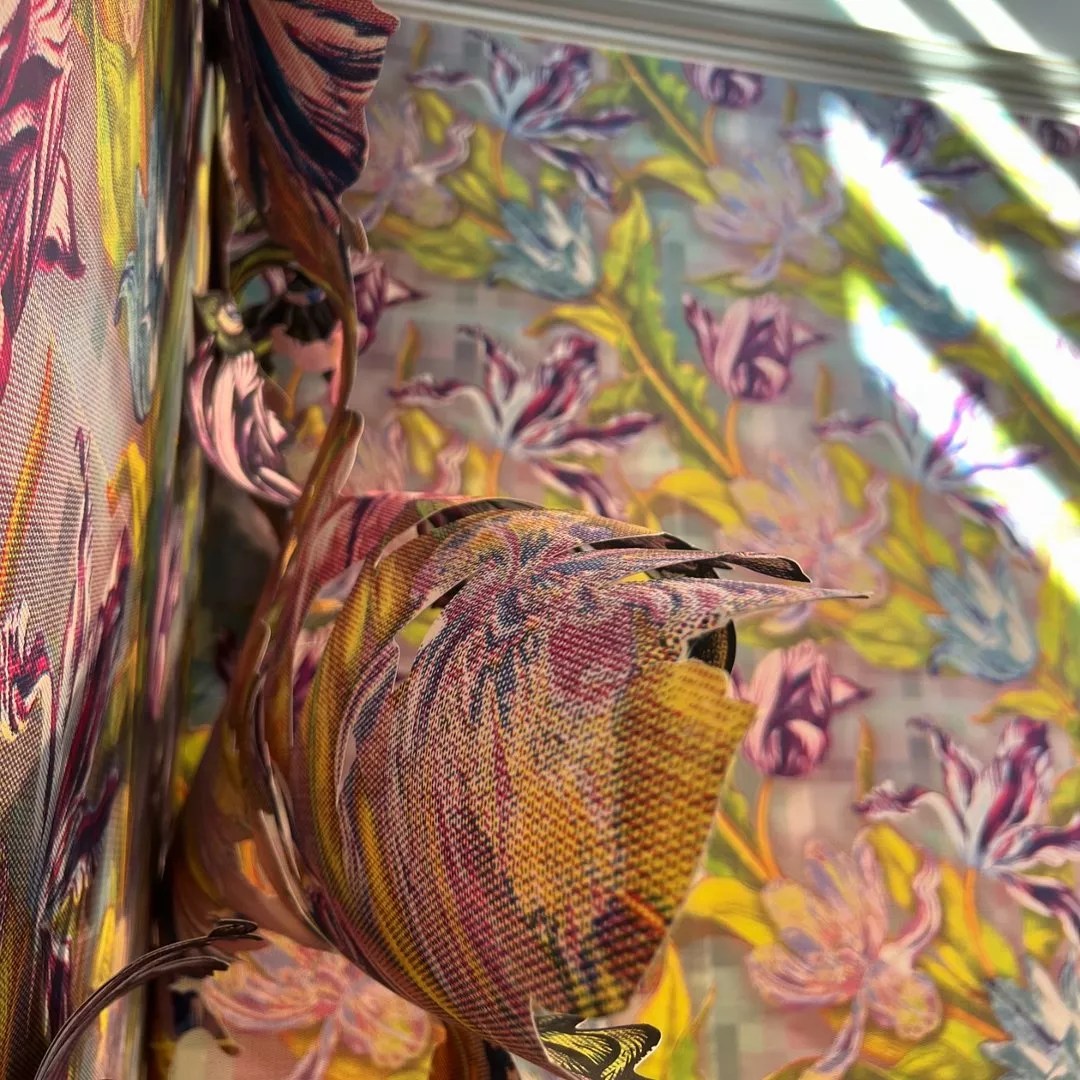 Screen-printedwall paper by Mary Claire Becker being installed at Art Gym for imPressed 2024.