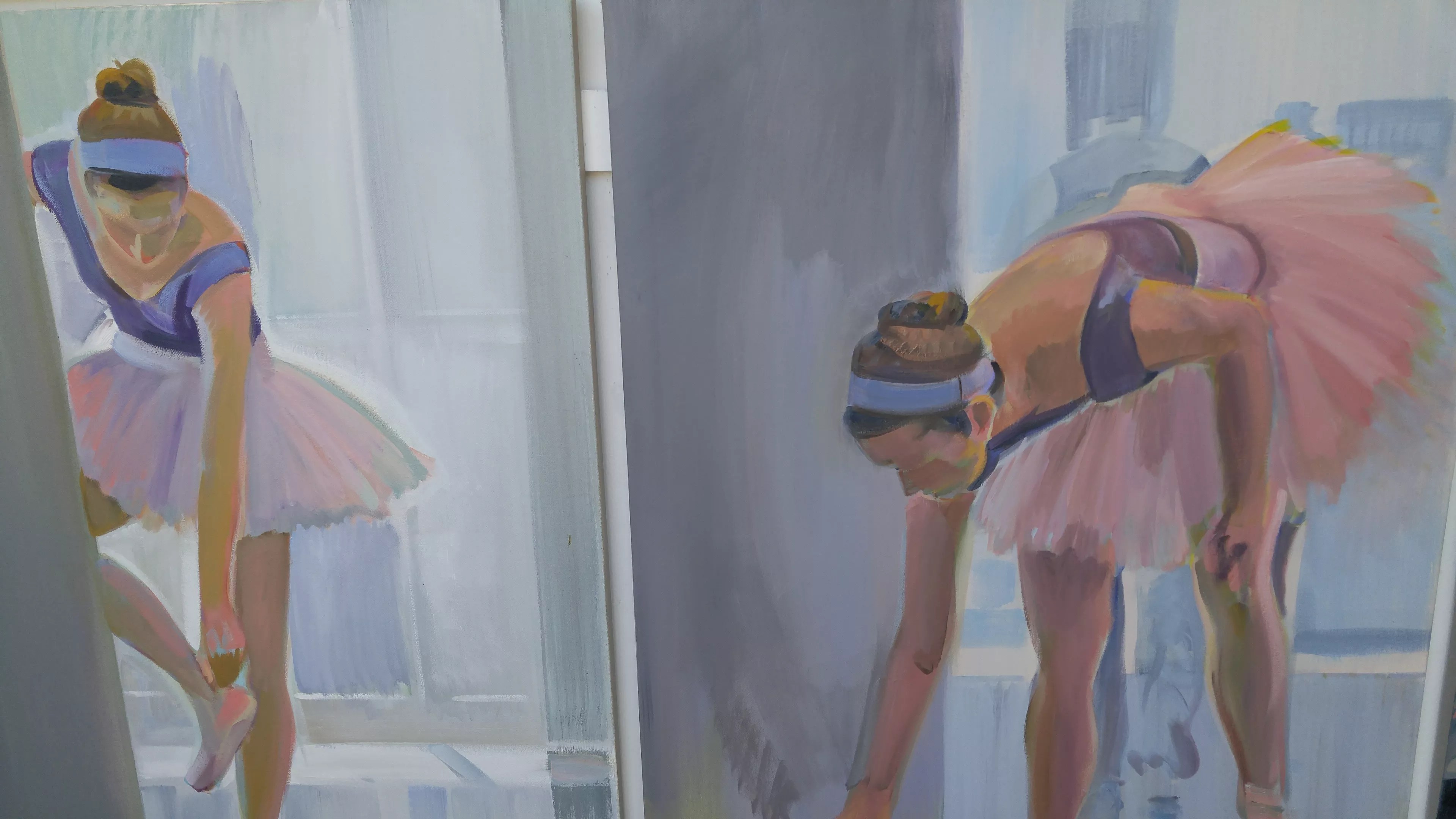 One of Peter Hurley’s oil paintings, inspired by Edgar Degas, of ballerinas rehearsing.