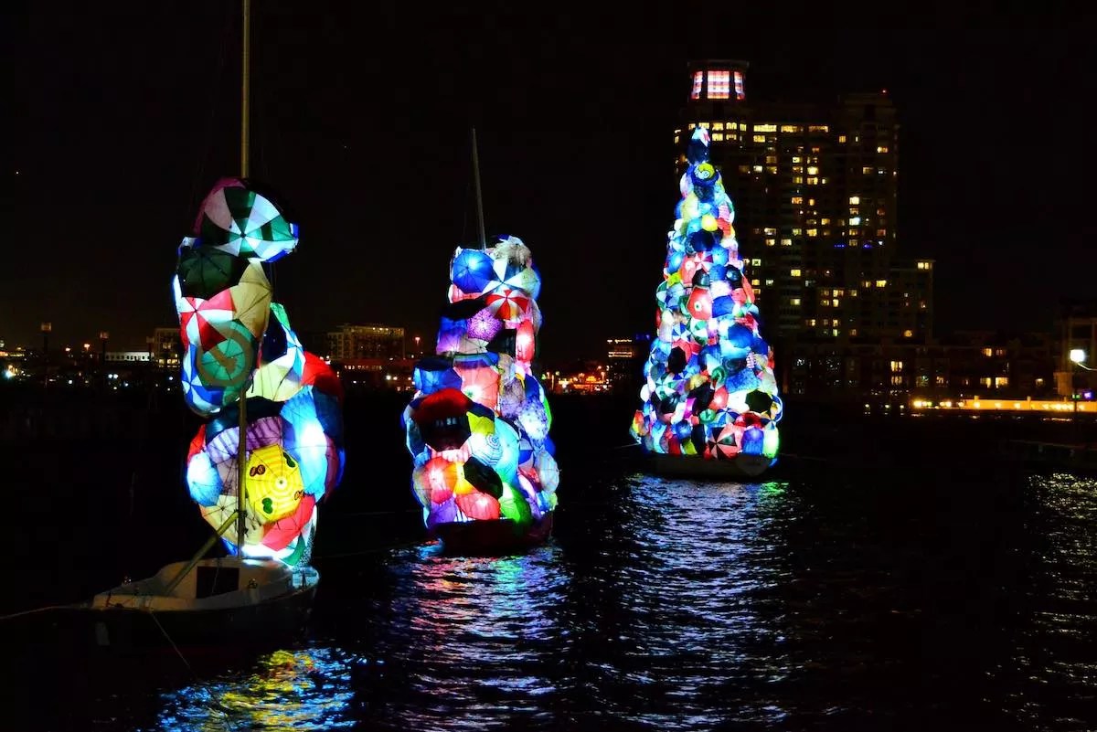 Imbeau is bringing “Place/d,” a new series of monumental light installations comprising brightly lit umbrellas, to Breckenridge on May 31 through June 3 for the flashy international WAVE: Light + Water + Sound festival, which bathes scenic and historical sites in the mountain town with all manner of sensory experiences. Stacked willy-nilly into fragile large-scale sculptures, Imbeau’s umbrellas signify humanity’s need for ephemeral shelter in a storm: “They are broken but useful, torn up but beautiful,” she says.