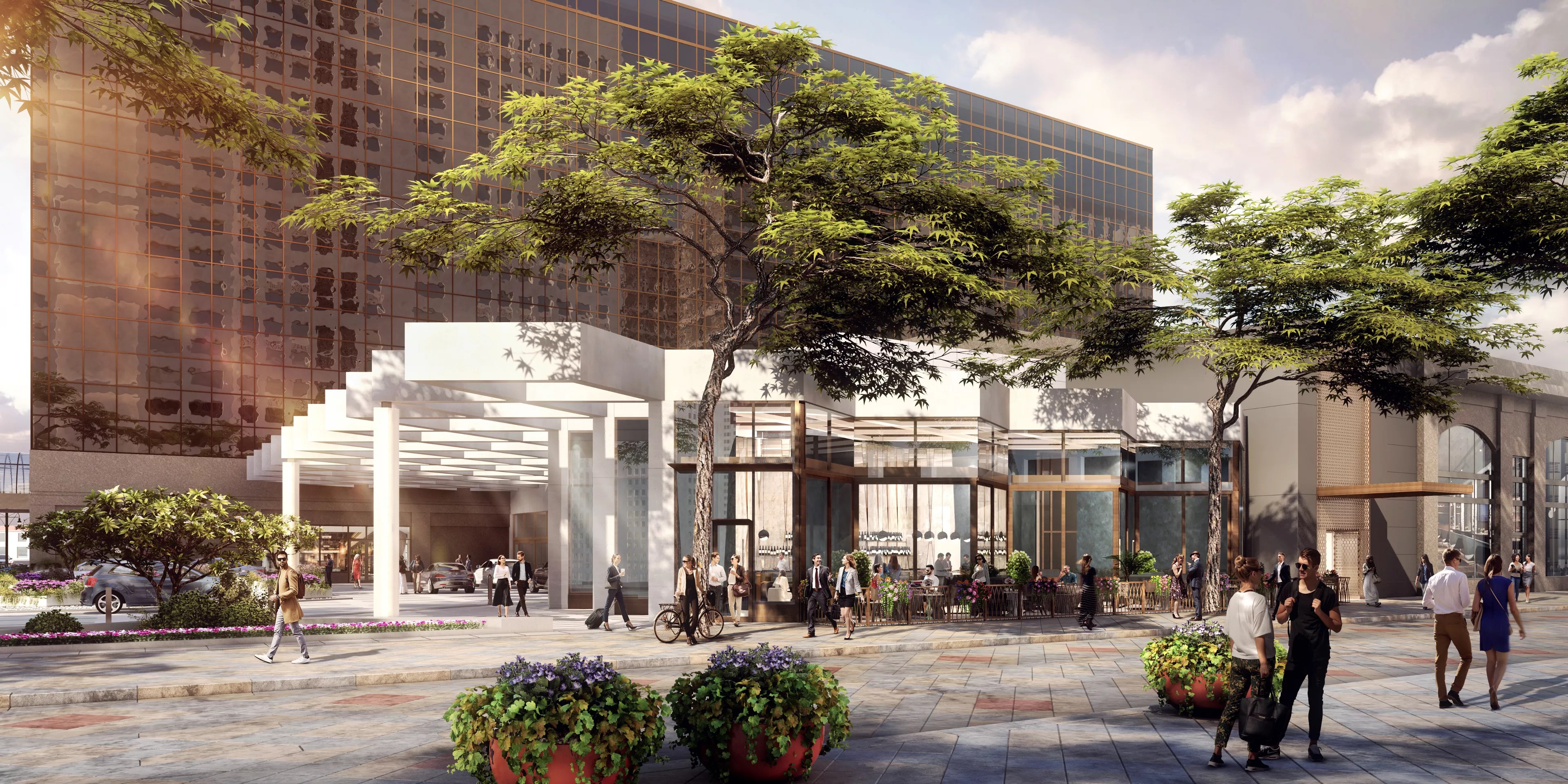 At least the hotel’s new owners recognize Pei’s contributions that remain downtown, including the 16th Street Mall designed by the firm of I.M. Pei and Partners in collaboration with Hanna/Olin (now called OLIN). “Drawing inspiration from the grandeur and light of I.M. Pei’s original design, the new porte-cochere, lobby entry, and signature bar create a striking statement at the east end of 16th Street Mall,” the project announcement proclaims.