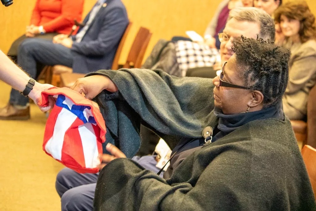 Rochelle Johnson accepts the Four Freedoms challenge at History Colorado.