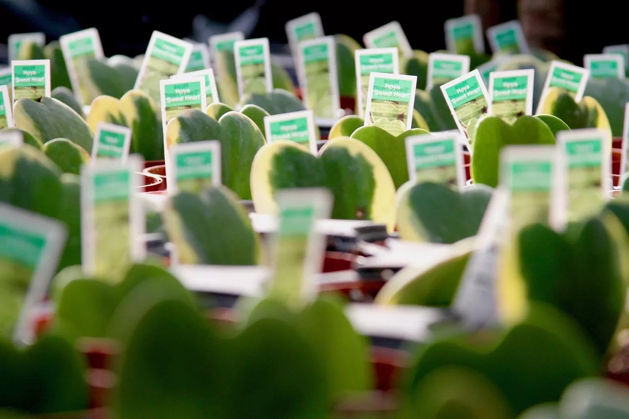 Heart-shaped Sweetheart Hoya plants at Calabrese Greenhouse, one of Rosehouse’s suppliers.