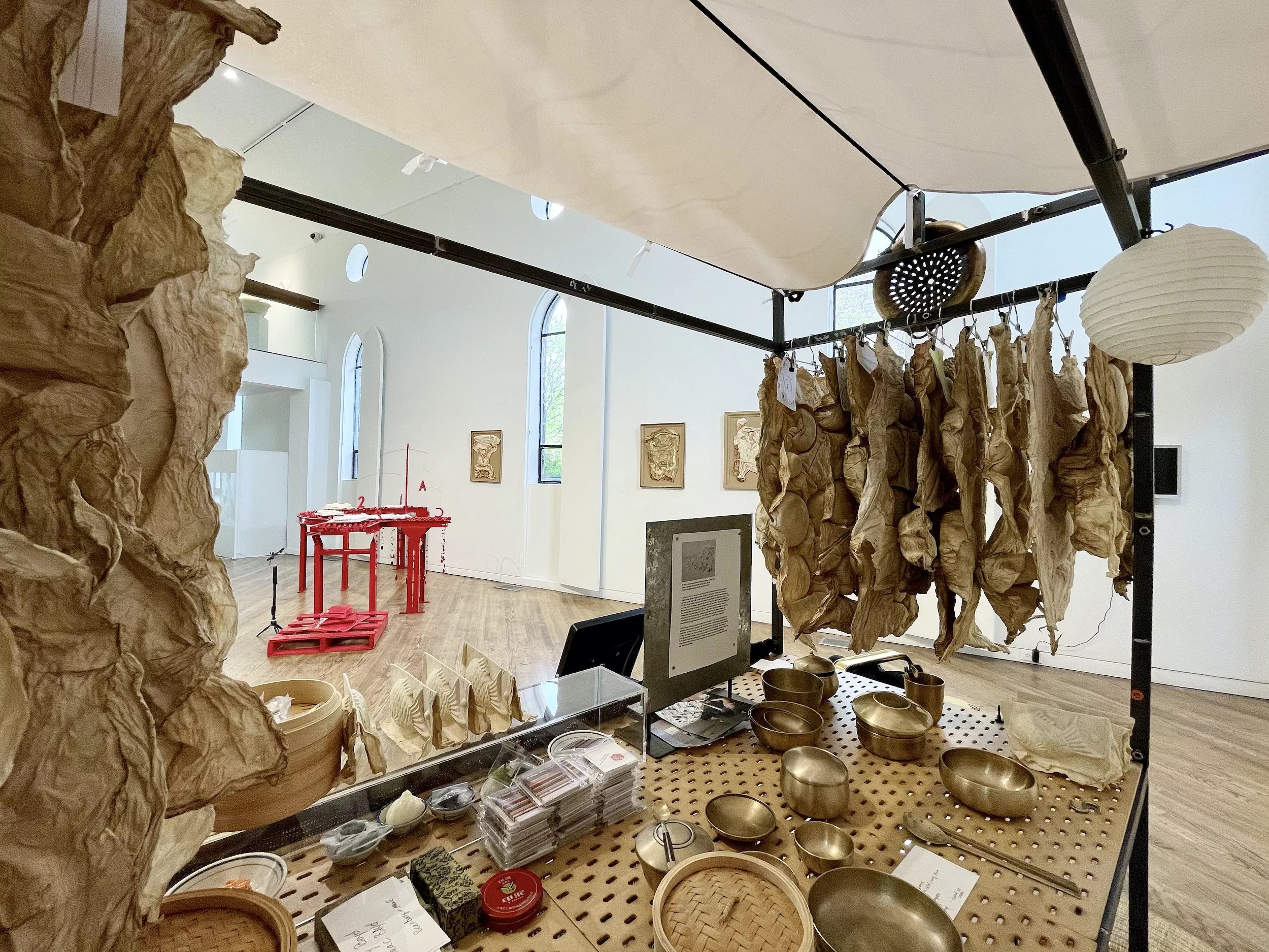 It’s a fine introduction to Lee’s predilection as an artist for raising community, especially as it forms around meals. She’s known for her hanji-cast table settings that recall special dinner parties, including the first she attended in the U.S., and a meal as simple as an ordinary lunchtime repast.