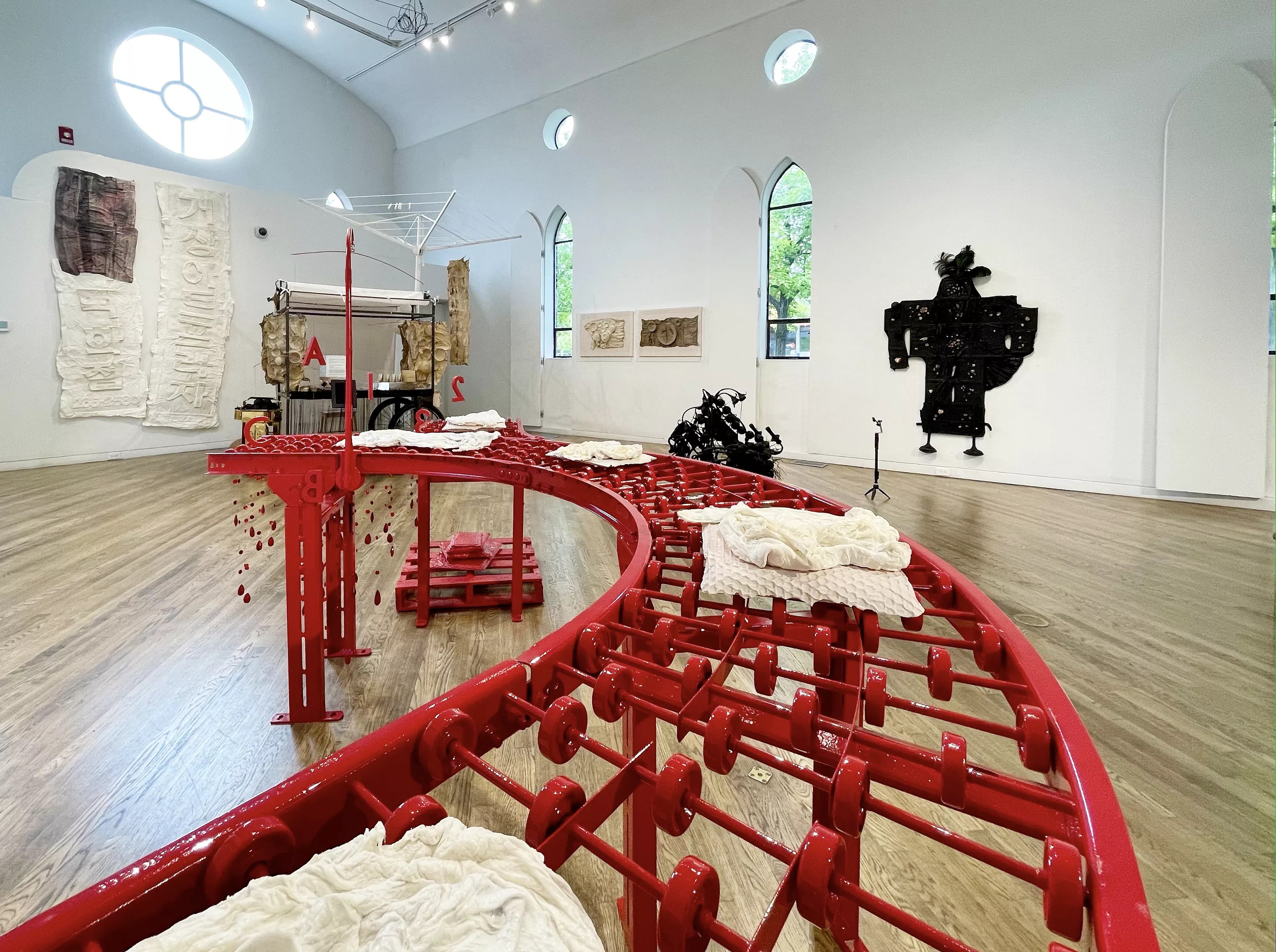 With that in mind, Sammy Lee: Remind Me Tomorrow, Lee’s comprehensive exhibition now on view at the University of Colorado Denver’s Emmanuel Gallery, comes together as a personal-history museum, with each element serving as a connective diorama, right down to the artist’s most essential process of felting paper.